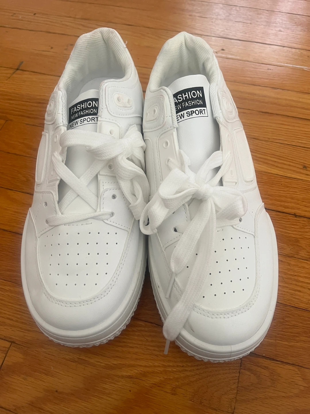 These are a pair of white fashion new sport shoes. They're in great condition and ready for a new owner!