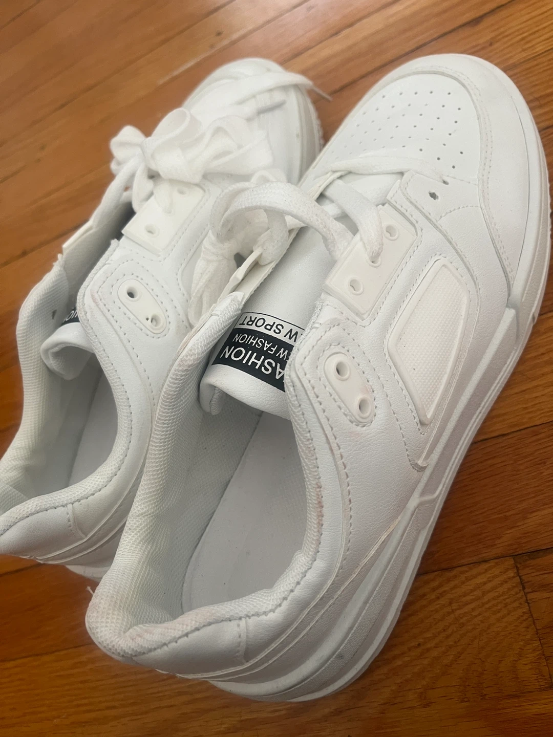 These are a pair of white fashion new sport shoes. They're in great condition and ready for a new owner!