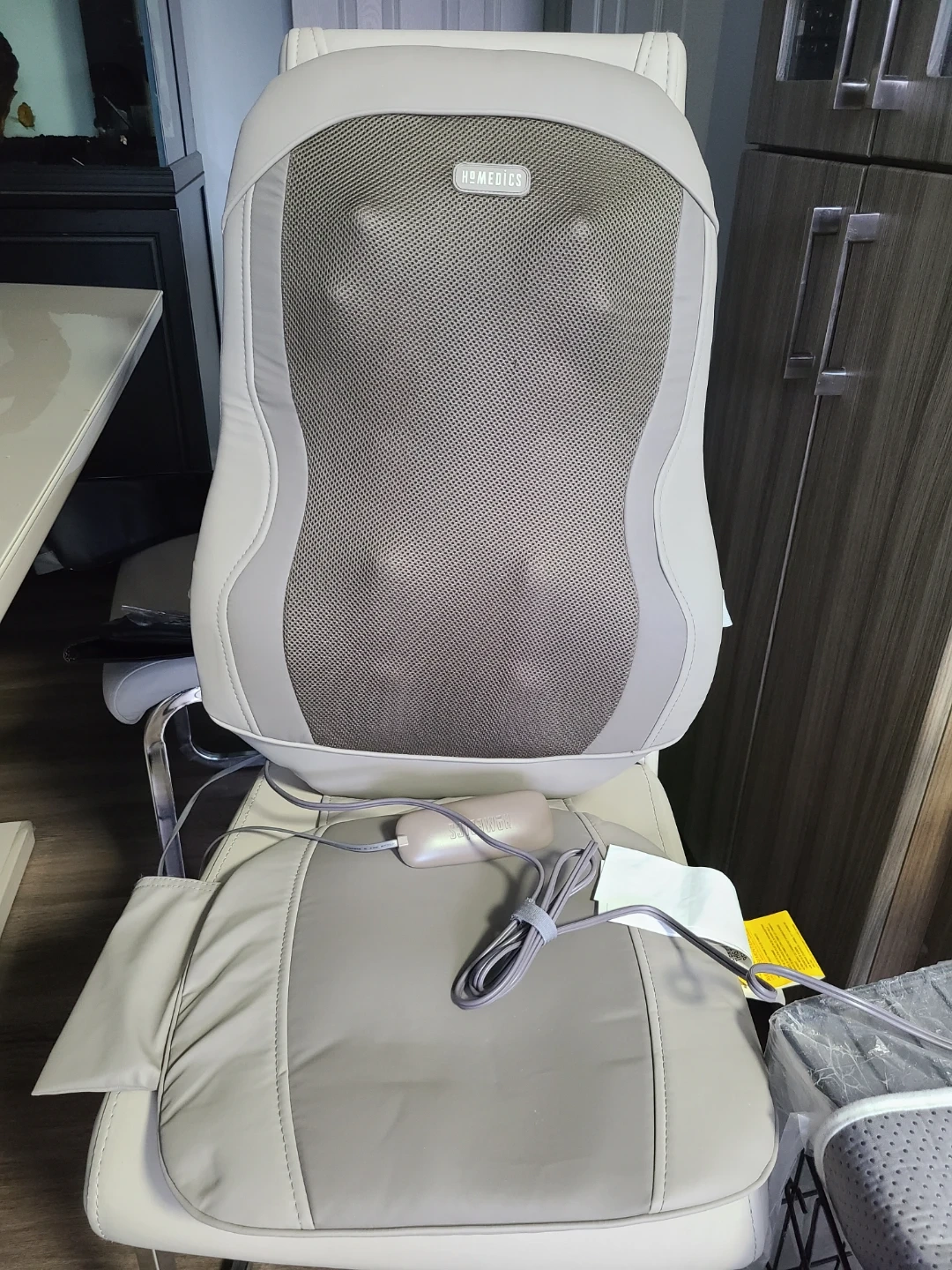 Selling a HoMedics Triple ShiatsuPro massage cushion with heat. It features 3D kneading and dynamic shiatsu massage for deep tissue relief. This unit includes the original box and remote for easy operation.