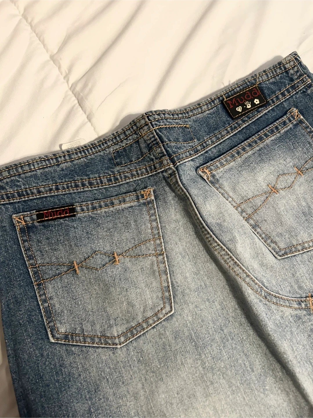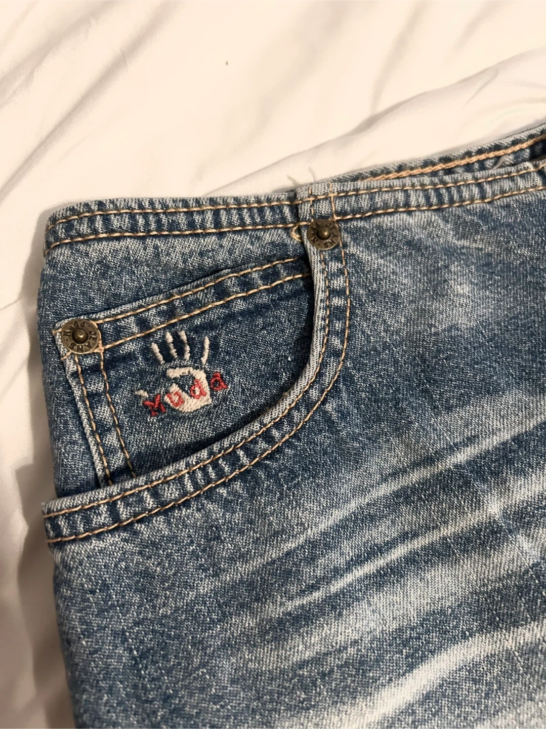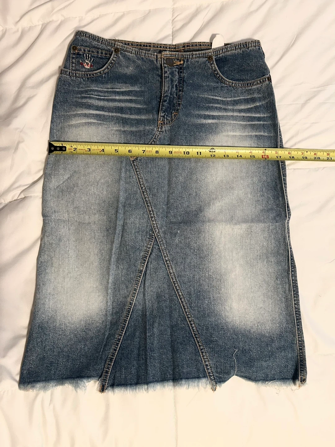 Vintage Y2K Mudd Blue Denim Mid Skirt with Frayed Bottom Hem