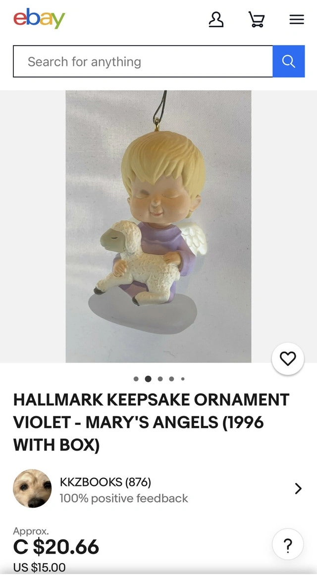 Buy & Sell1996 Hallmark Mary's Angels Series Keepsake Ornament1996 Hallmark Mary's Angels Series Keepsake Ornament$10It’s going to elevate your tree. Pop Culture Collectibles.WHERE TO MEETCheck LocationView MapSELLERChevyDowntown Toronto14716 reviews0 chats·0 favorites·0 viewsSEND CHAT TO SELLERHi Chevy! I’m interested in your listing.Hi Chevy! I’m interested in your listing.Get the Karrot app to chatSign In to chat