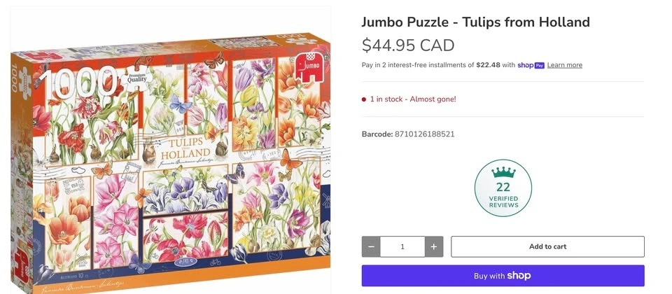 This specific puzzle retails at the Holland Store for $44.95 + shipping and tax, which usually ends up costing around $50 total.