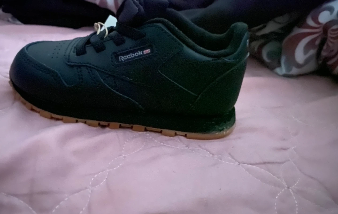 Kids Reebok Classic shoes in black with a gum sole. Lace-up closure for a secure fit. Perfect for everyday wear!