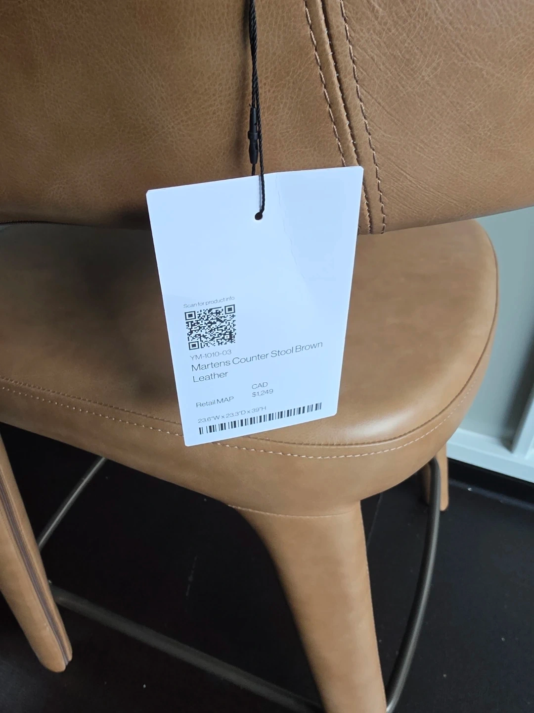 Buy & SellMartens Counter Stool Brown LeatherMartens Counter Stool Brown Leather$250Brown leather counter stool with a metal footrest. Dimensions are 23"D x 23"W x 39"H. It has a curved back and armrests. Brand new.ConditionNewWHERE TO MEETWilloughby Town centerView MapSELLERverifiedSamWilloughby1145 reviews0 chats·0 favorites·4 viewsSEND CHAT TO SELLERHi Sam! I’m interested in your listing.Hi Sam! I’m interested in your listing.Get the Karrot app to chatSign In to chat
