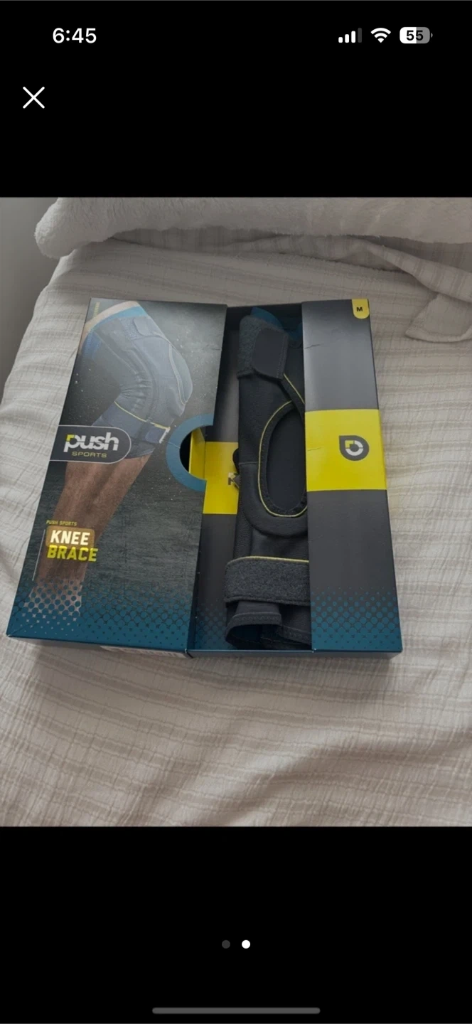 This is a Push Sports knee brace in size medium. It's designed to provide support for active individuals. Includes original packaging. Brand new pick up cash only