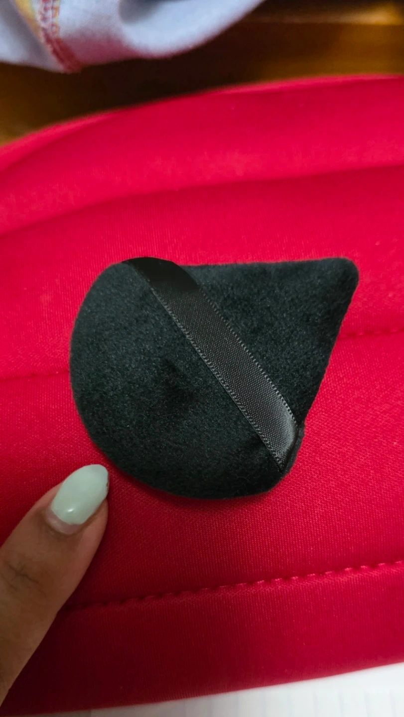 Soft velour makeup puffs. This listing is for 2 pieces. Both are black and have a ribbon handle for easy grip. Good for applying powder or setting makeup.