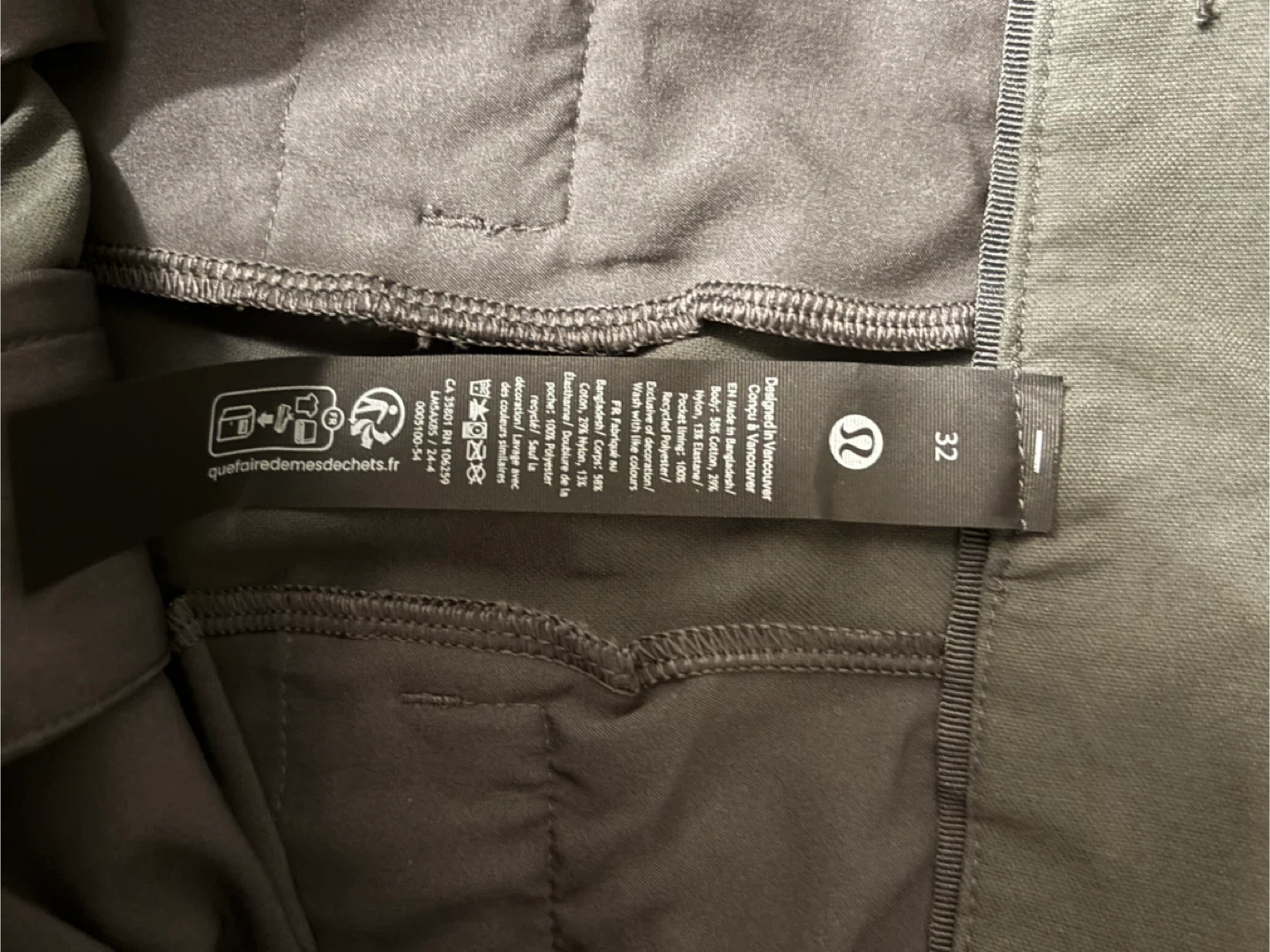 Lululemon ABC Pants in size 32W x 30L. Made from 94% polyester and 6% elastane. These pants are designed in Vancouver.