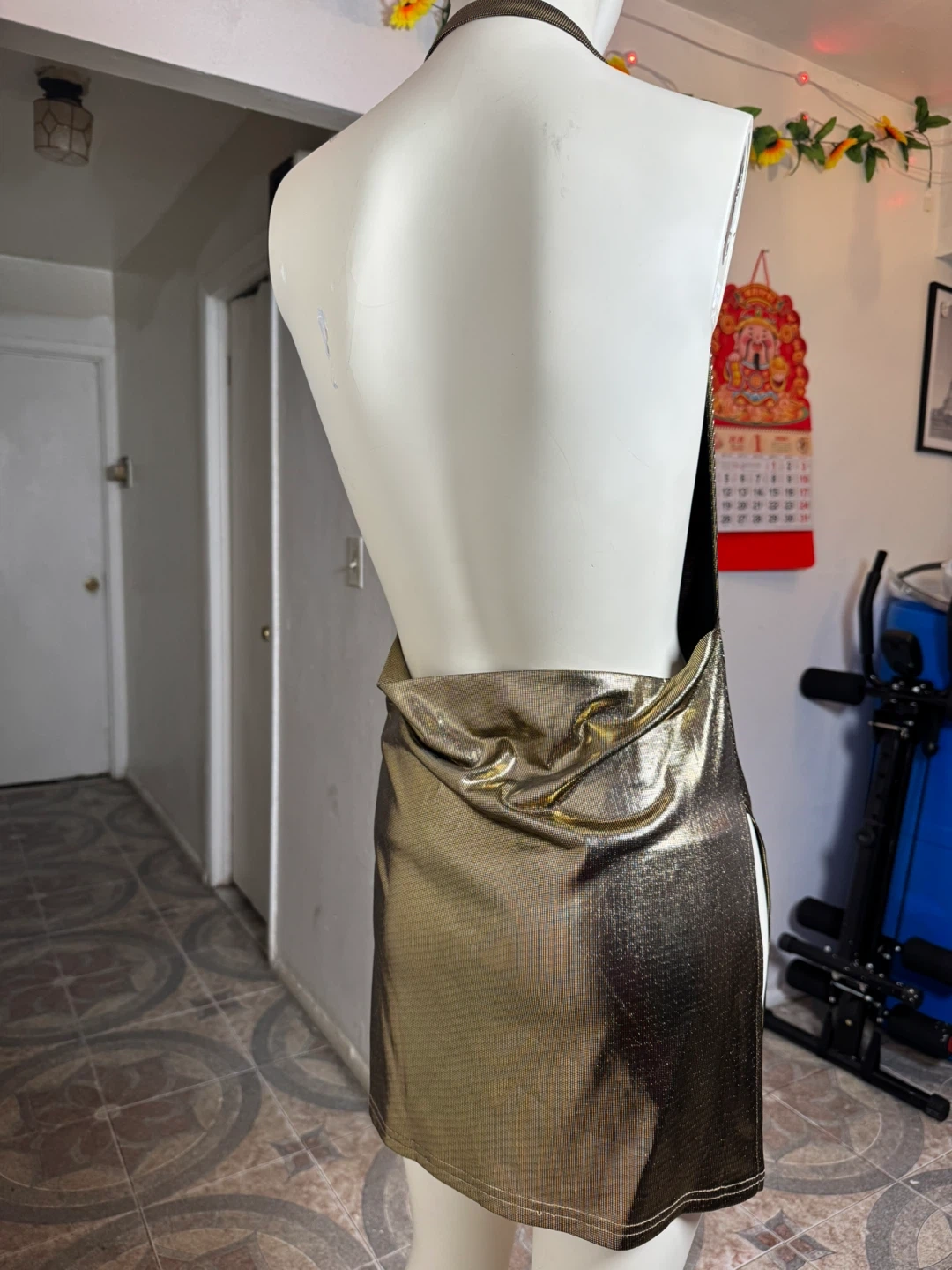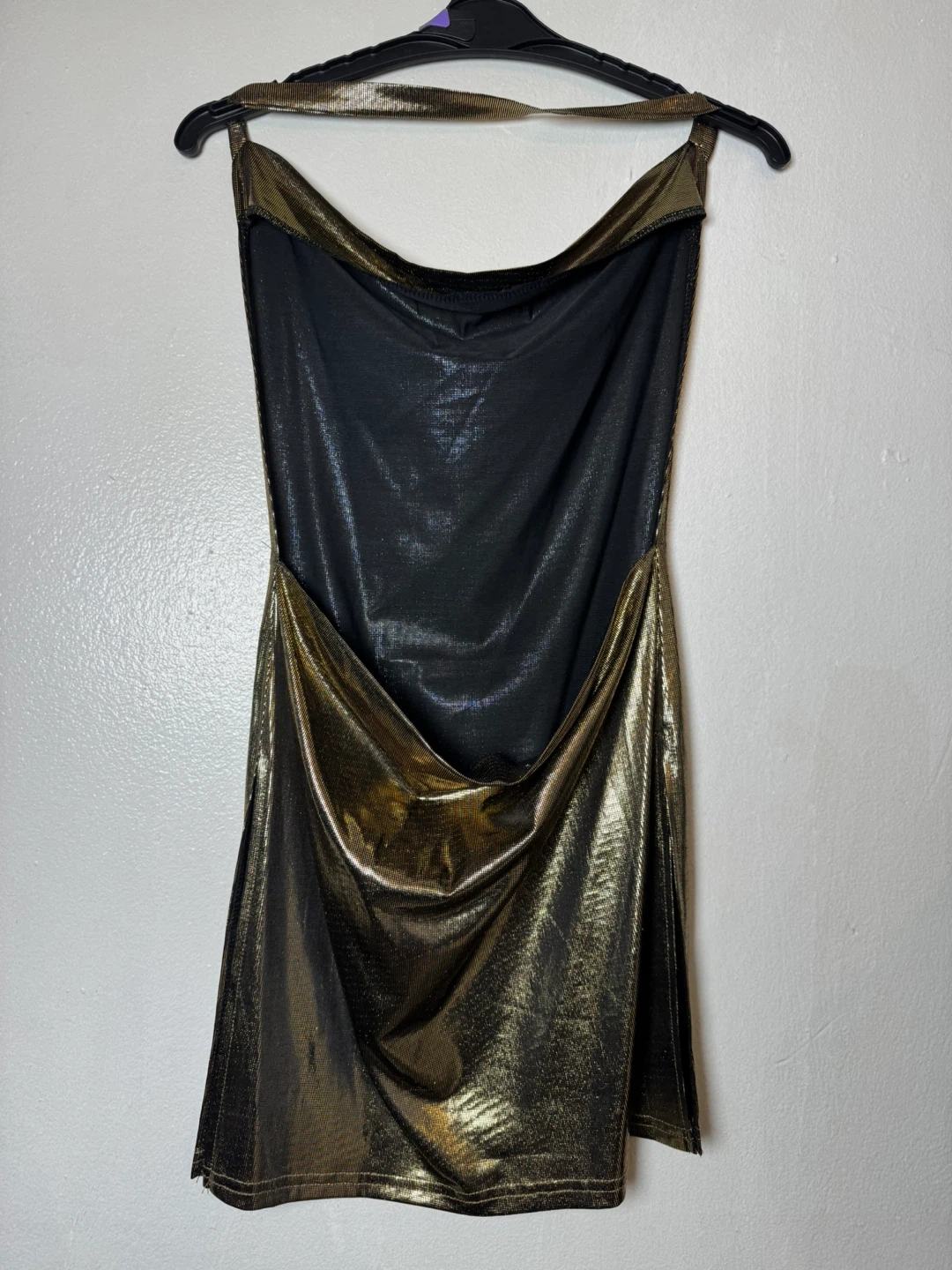 Gold Metallic Halter Mini Dress
