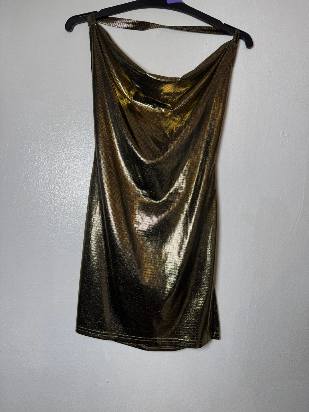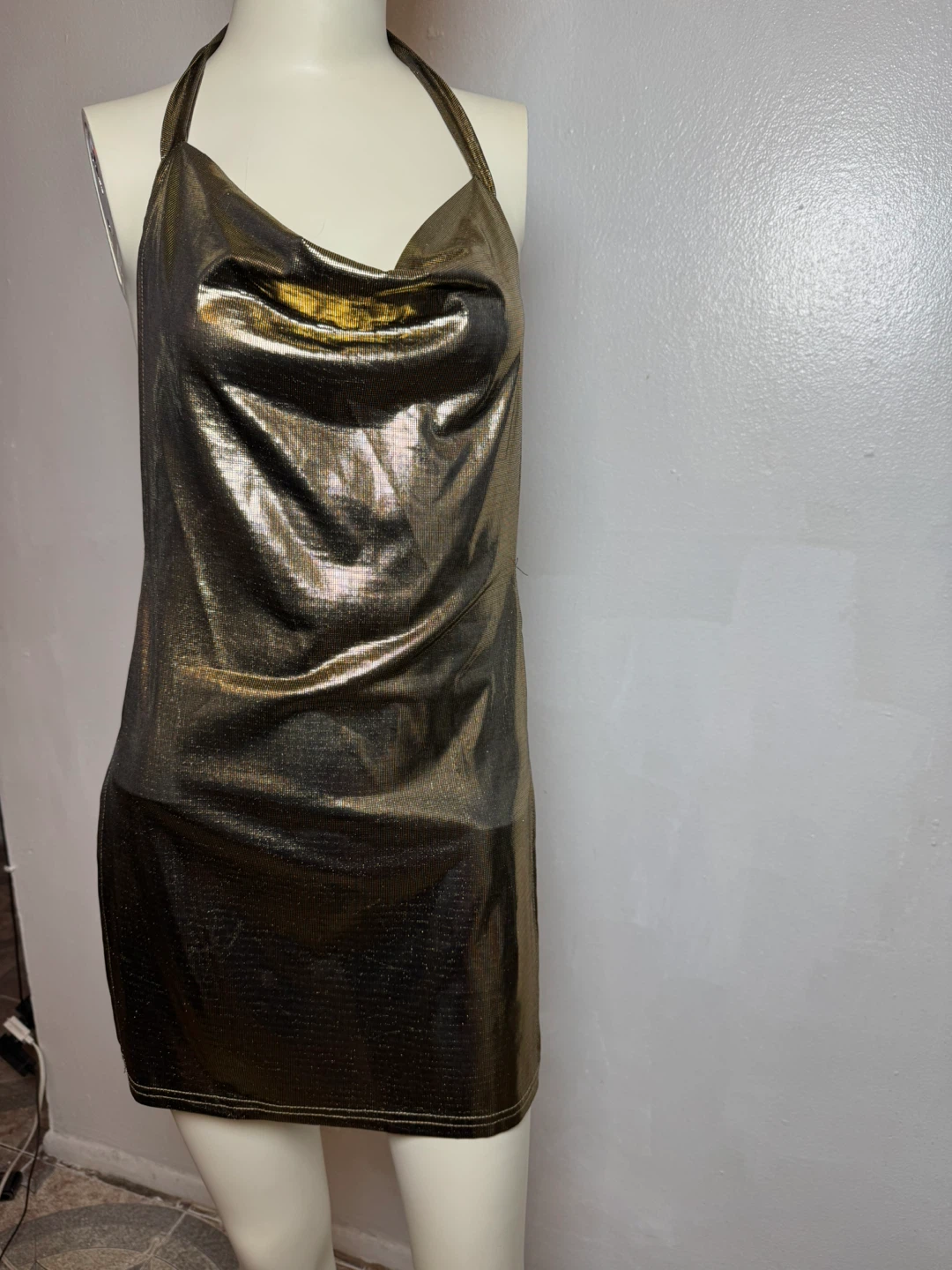 Gold Metallic Halter Mini Dress