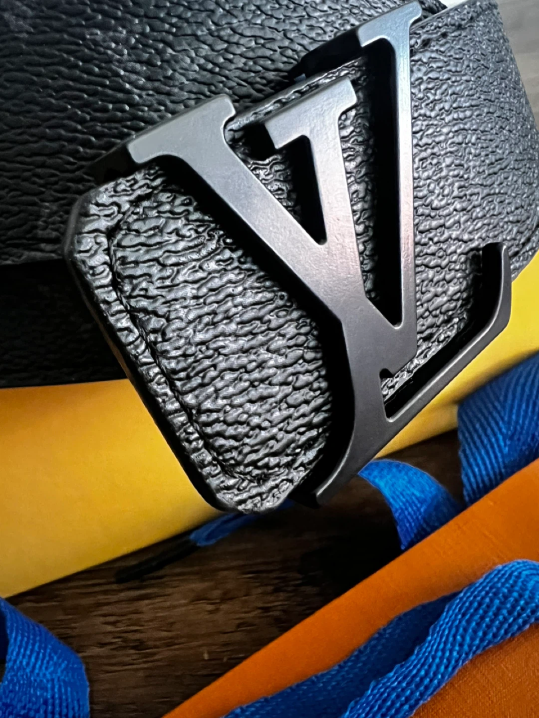 Louis Vuitton LV Initials belt in black with matte black buckle.