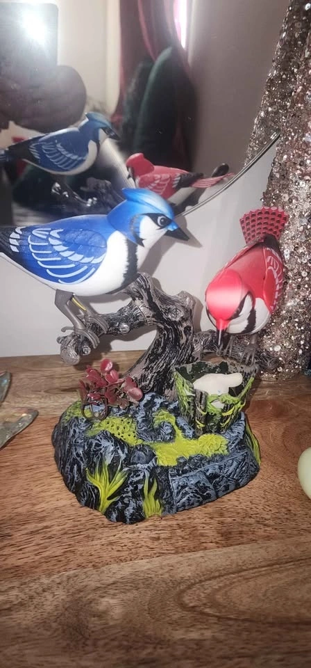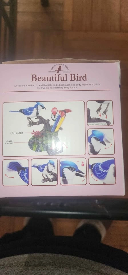 Birds sing and move! This is a fun toy bird pen holder. It requires 3 AA batteries, which are not included. Makes a beautiful home or office decor piece.
