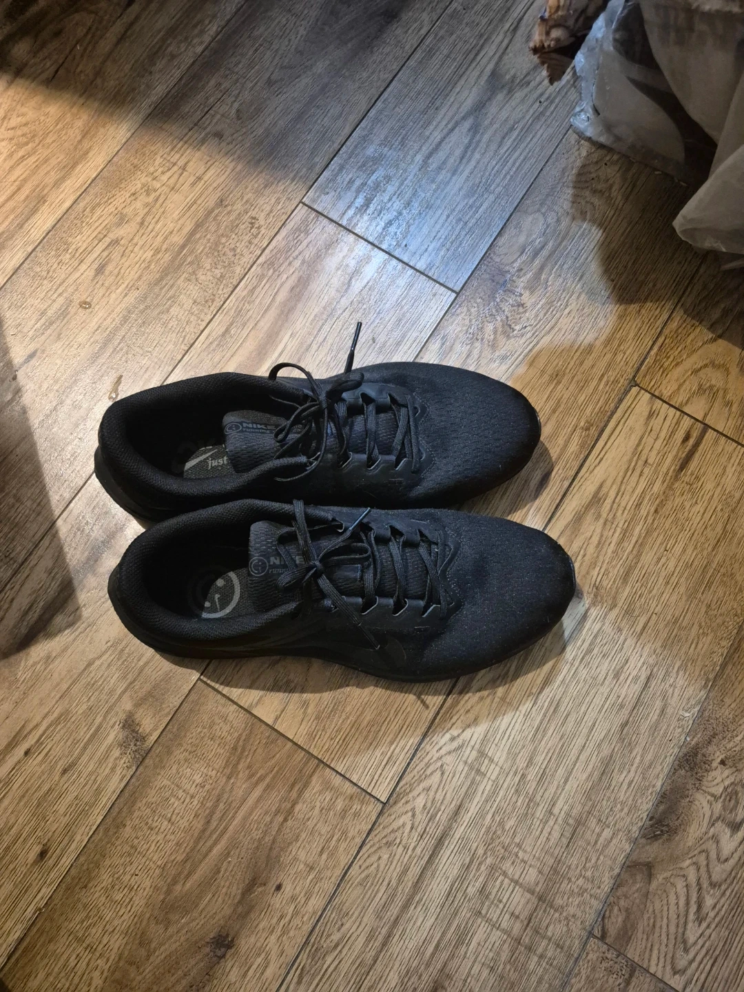 These are black Nike running shoes. They're designed for comfort and performance. Good for workouts or everyday wear!