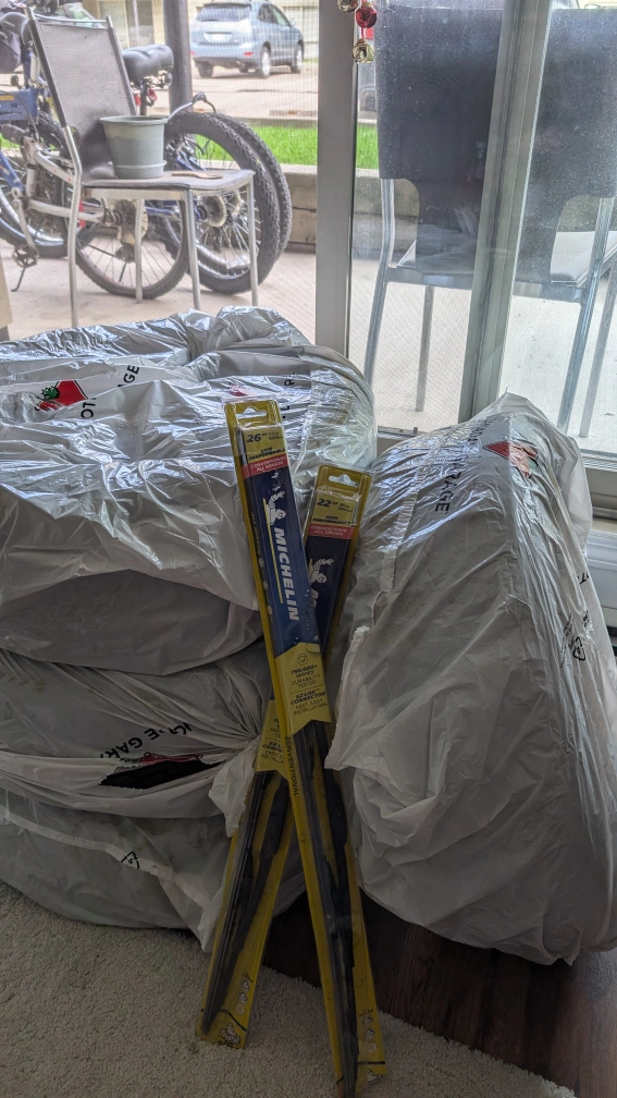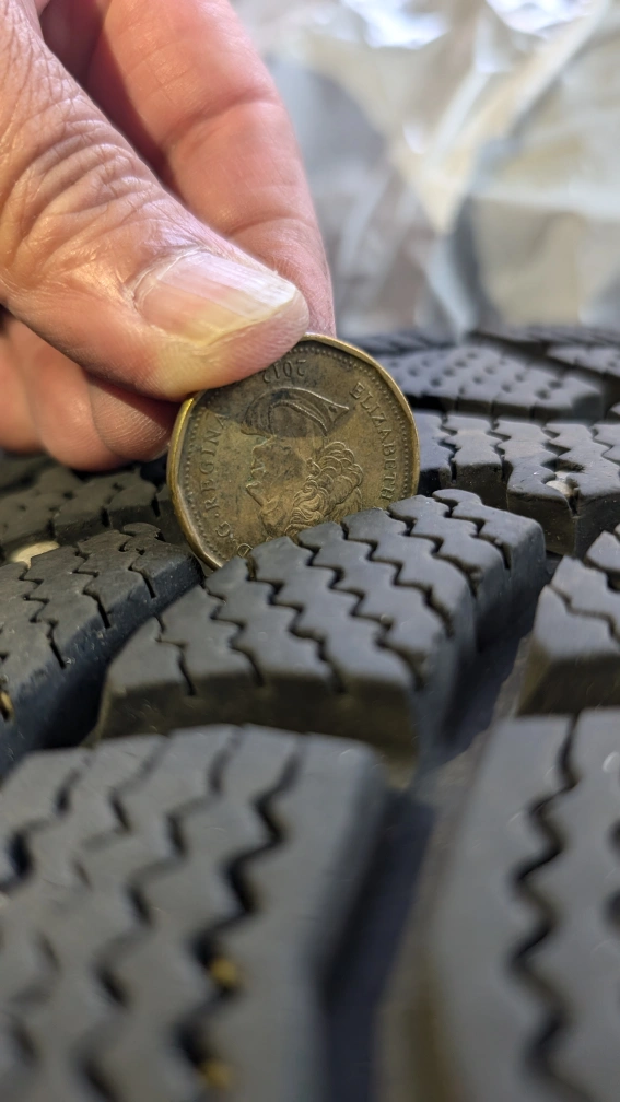 Selling a set of winter tires, size 205/55R16. They're mounted on Honda alloy rims. The tread depth is pretty good, as you can see from the picture with the coin