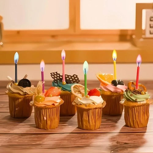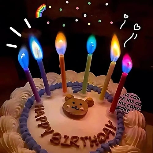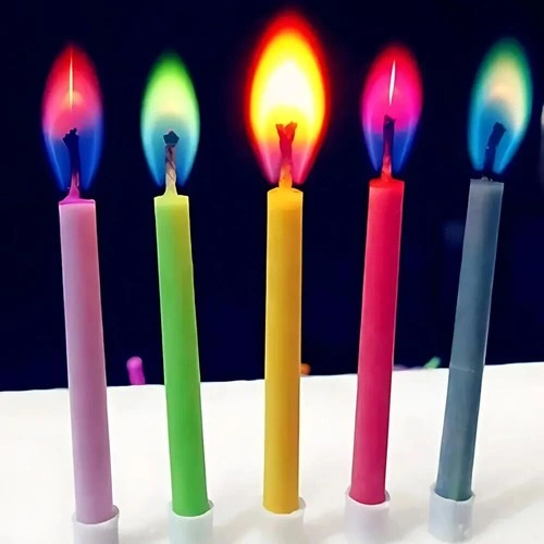 Add a splash of excitement to any celebration with these vibrant candles that burn with colored flames, creating a mini light show! Perfect for any cake, measuring 55mm in length and 5mm in diameter. Features 6 stunning flame colors (Red, Pink, Yellow, Blue, Green, Purple), ideal for birthdays, anniversaries, and other joyous events. Made from non-toxic, water-soluble materials. Each candle burns for up to 5 minutes and comes with its own plastic holder, ensuring no wax drips. For the best color flame effect, light these in a dim or dark room.