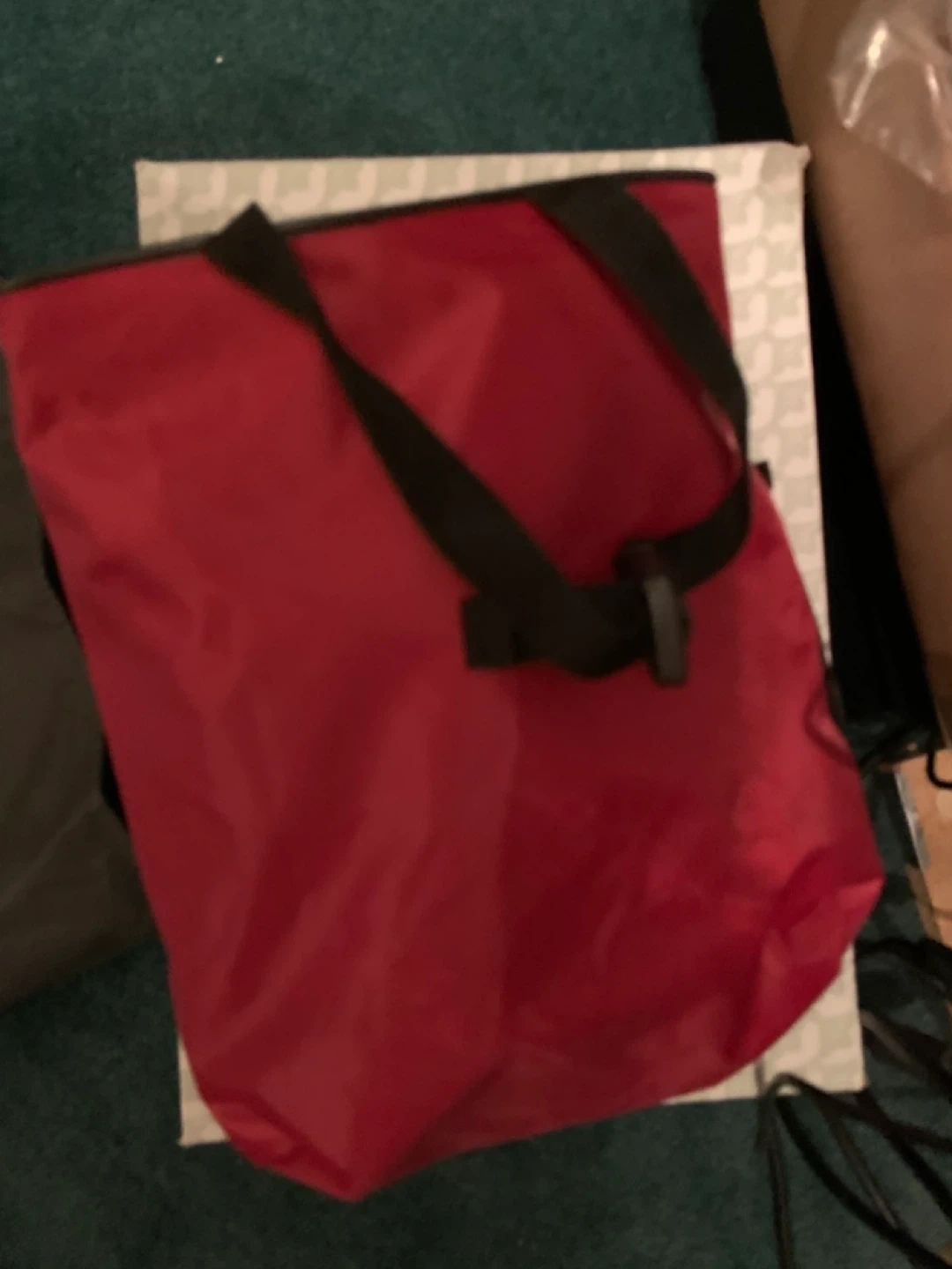 Red insulated tote bag with mesh pocket π₯
