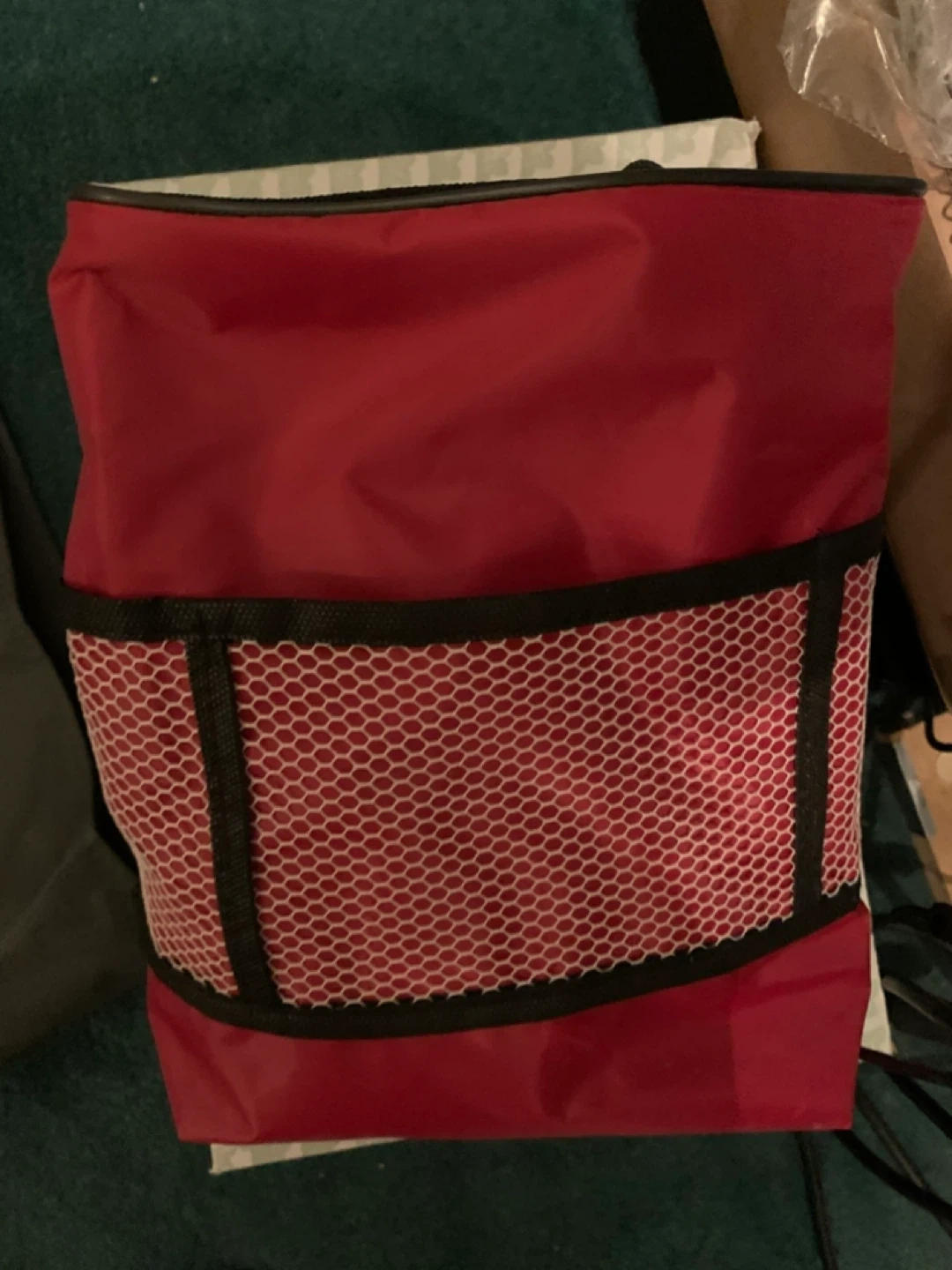 Red insulated tote bag with mesh pocket π₯