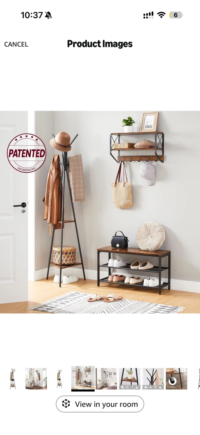 Vasagle Standing Coat Rack with 2 Shelves