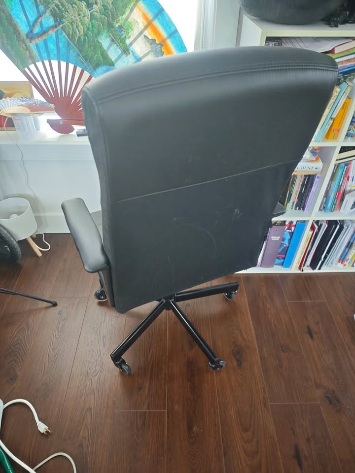 Fairly new IKEA MILLBERGET swivel chair in Murum black. Upgraded wheels: replaced with quiet, smooth rubber wheels ($30 value) – no scratches on floor. Adjustable height & comfortable for home office or study. Condition: Very good, minimal wear. Original price: $179. Asking price: $90 (great deal with upgraded wheels!). Pickup only.
