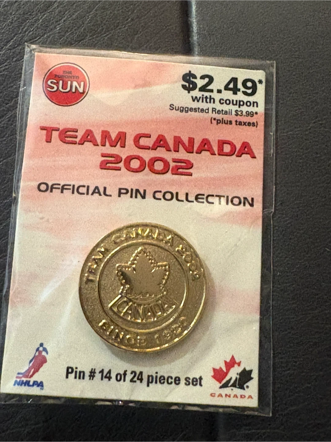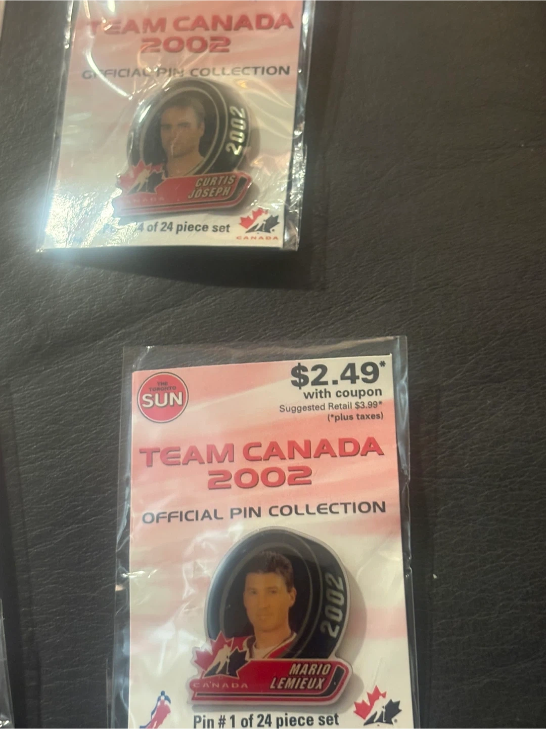 This is a collection of Team Canada 2002 official pins. Each pin is part of a 24-piece set, featuring various Canadian athletes. They're great for collectors or any fan of Canadian hockey!