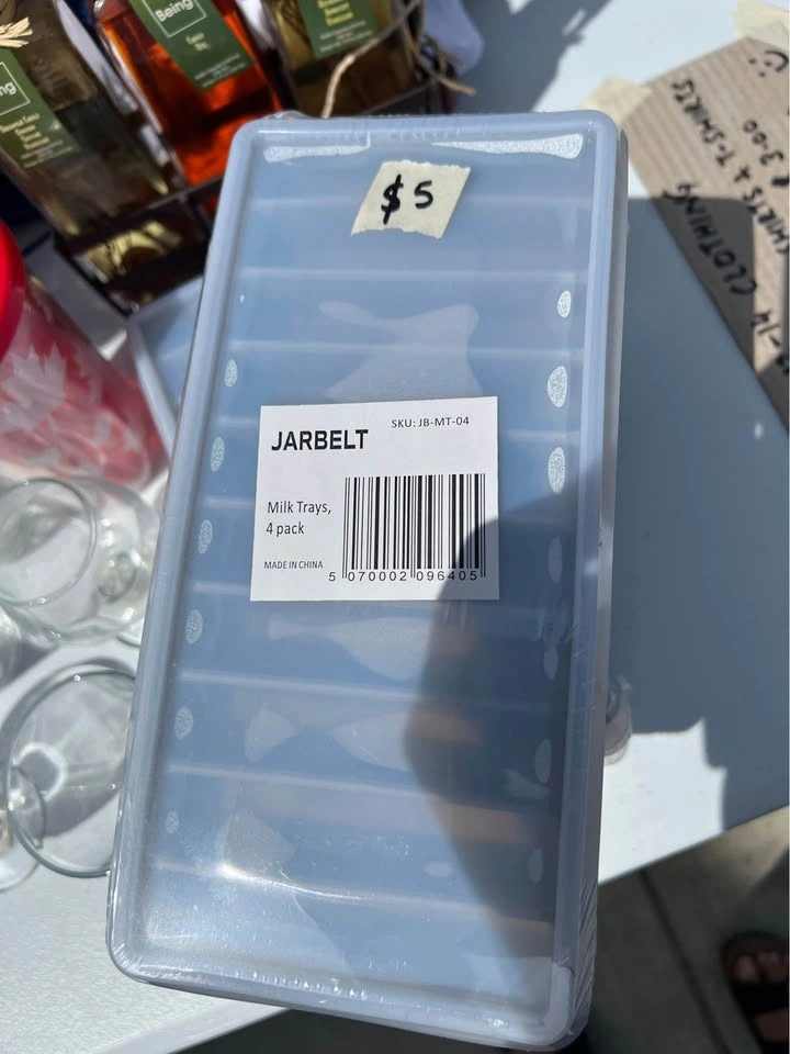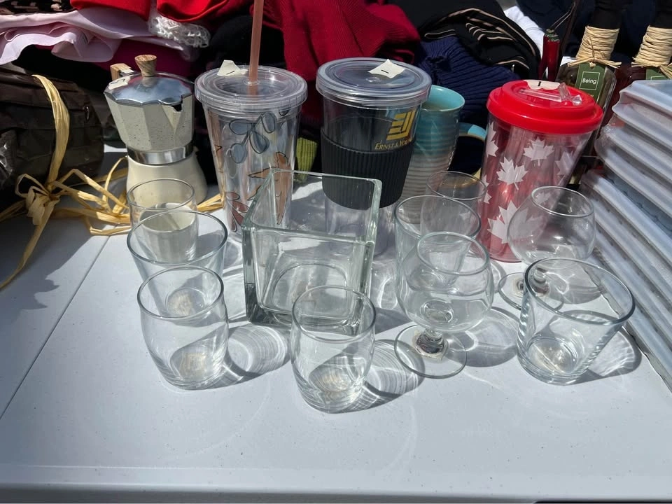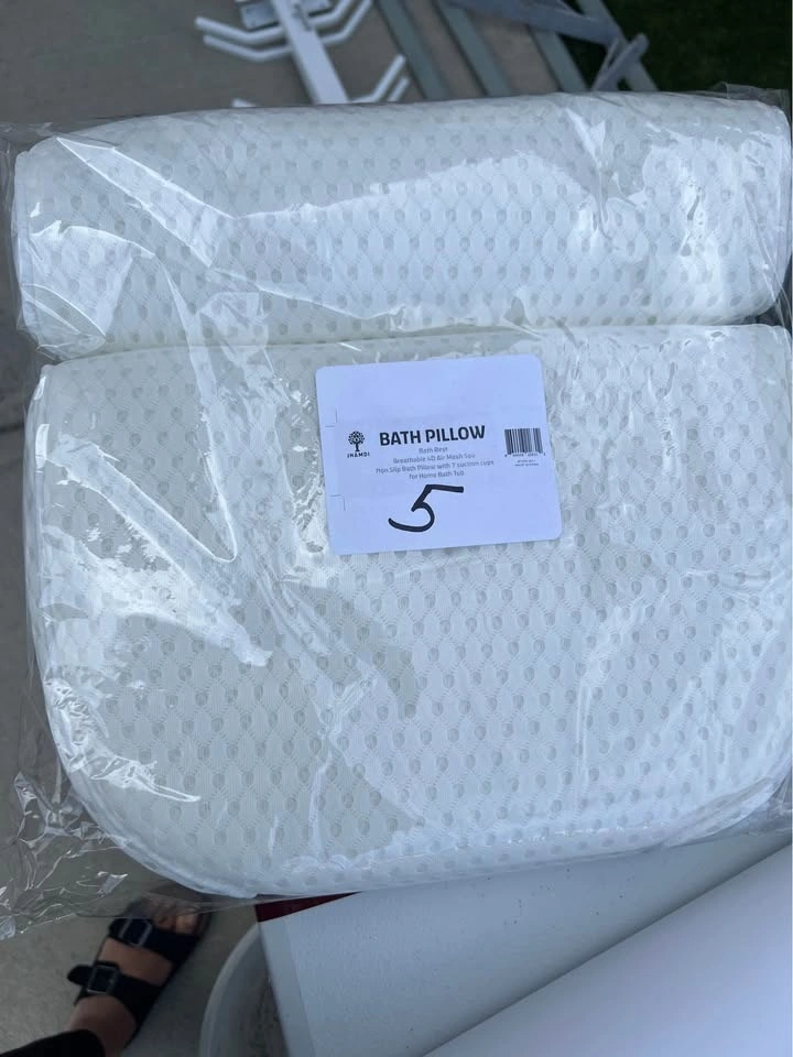 New Bath Pillow: 1 for $5, 2 for $8. New Acrylic Window Shelf: 1 for $3, 2 for $5. New Ground bird feeder tray: $4. New Back Cushion: 2 for $5. New Landscape Edging Stakes (25 pack): $5. New Multifunctional Combination Trainer: $5. New Barbell Collars Pair: $5. Lightly used Glasses: 25c each, big ones $1. New Milk/ice cube trays (Pack of 4): 2 for $5. Photo frame: $5.