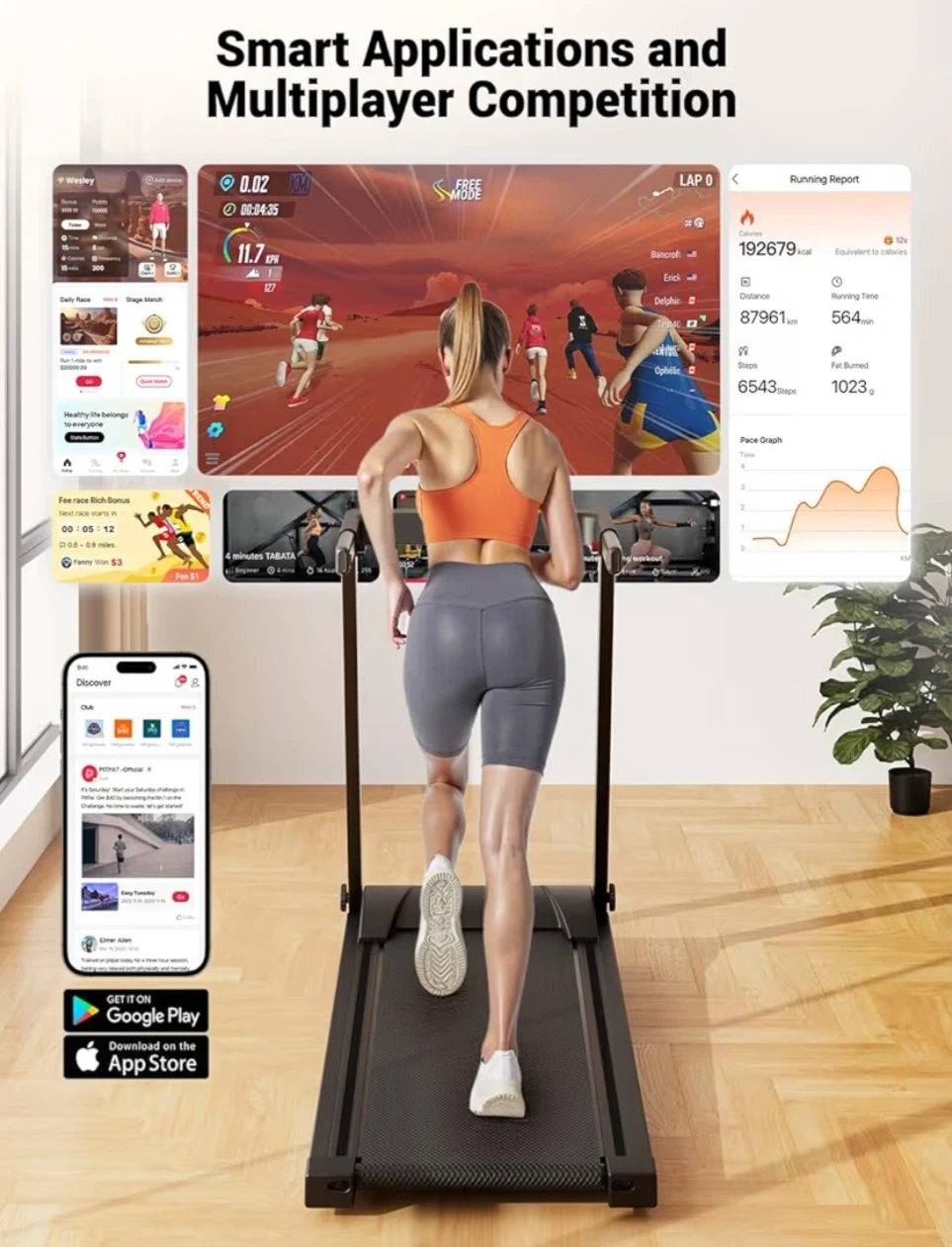 Treadmills for Home with Incline and Handles, 3.5 HP Foldable Walking Pad Treadmill 350 LBS Weight Capacity for Small Spaces, Folding Running Machine with Smart APP