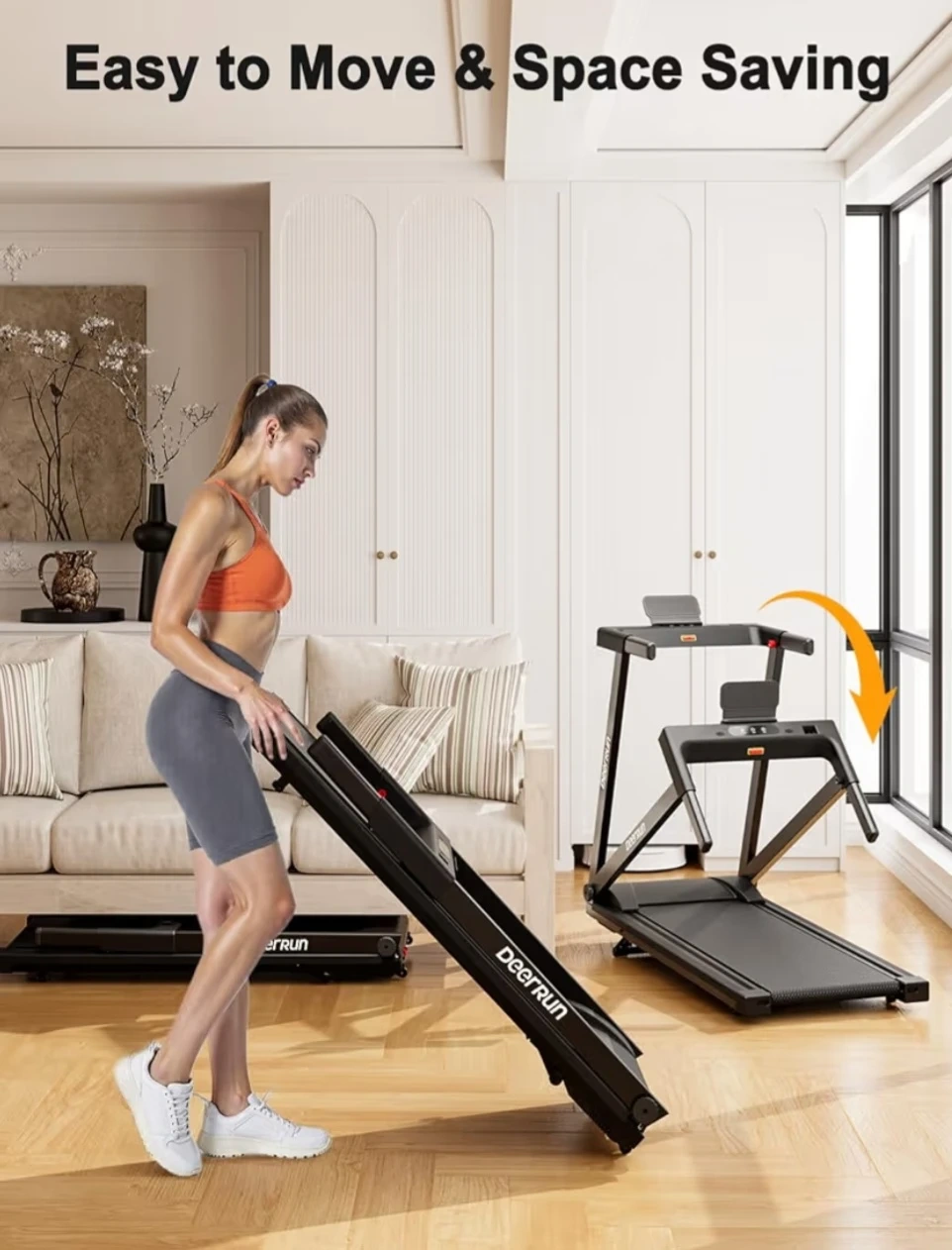 Treadmills for Home with Incline and Handles, 3.5 HP Foldable Walking Pad Treadmill 350 LBS Weight Capacity for Small Spaces, Folding Running Machine with Smart APP