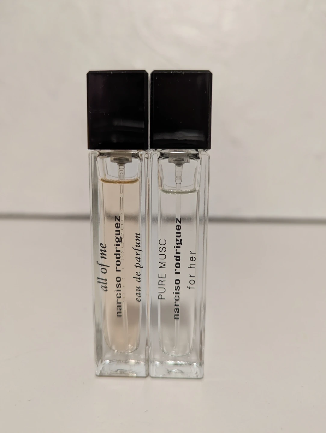 Two Narciso Rodriguez miniature perfumes. Includes 'all of me' eau de parfum and 'PURE MUSC' for her. Perfect for trying out new scents!