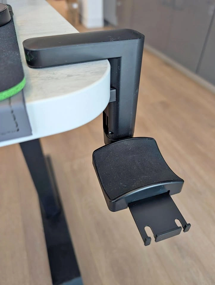 Fits most desk thicknesses and swivels for easy access. Includes a smooth pull‑out tray perfect for hanging or organizing charging cables. Great for keeping your setup tidy and your headset always within reach. (Headset not included) Pick up only. Nearest intersection is Sheppard and Leslie
