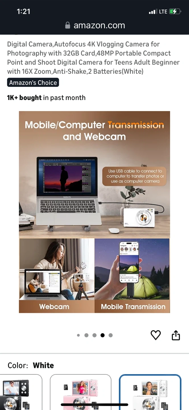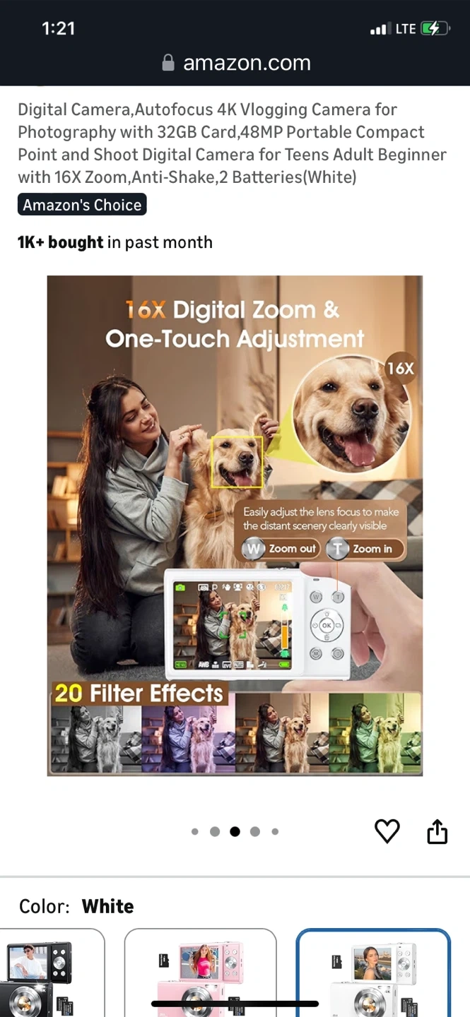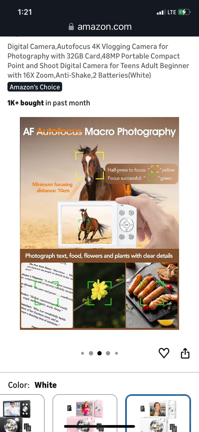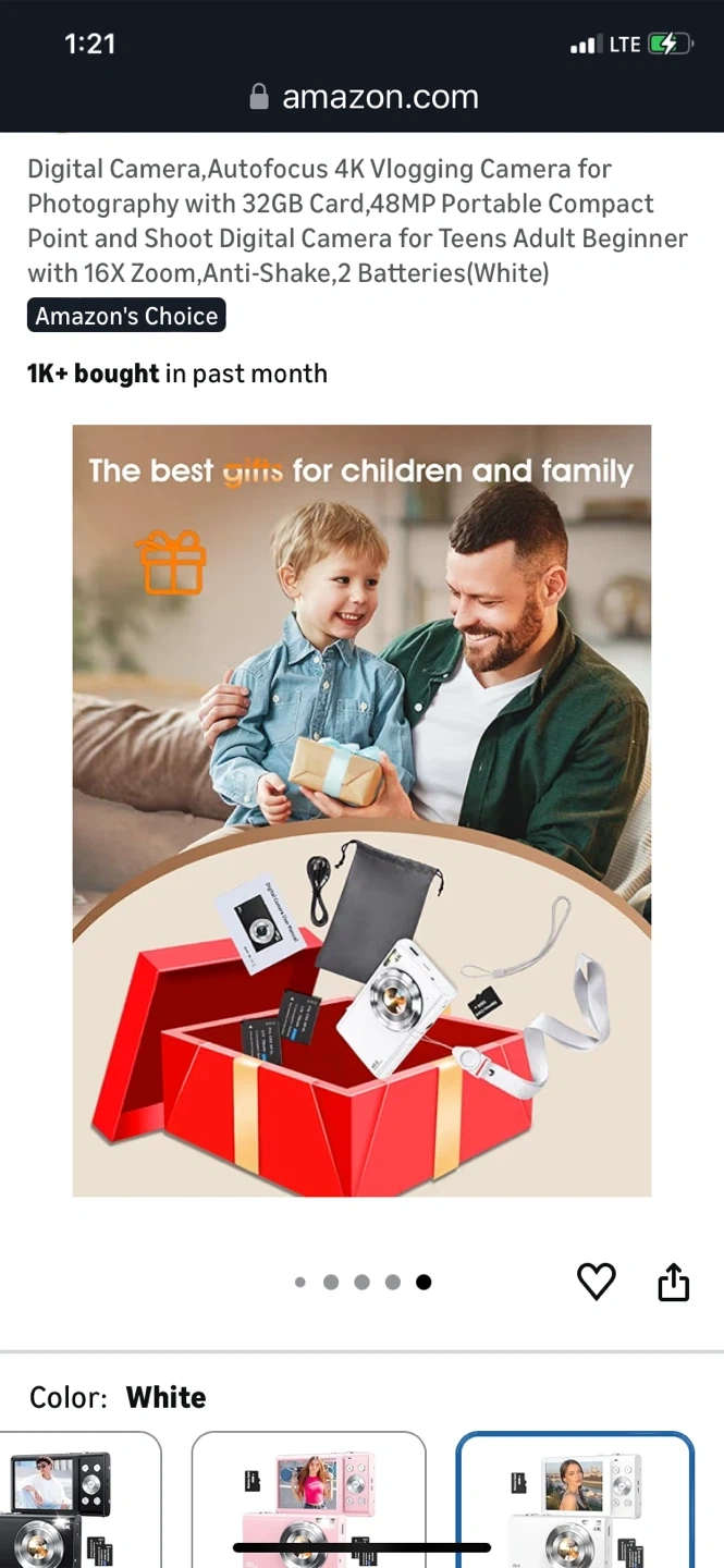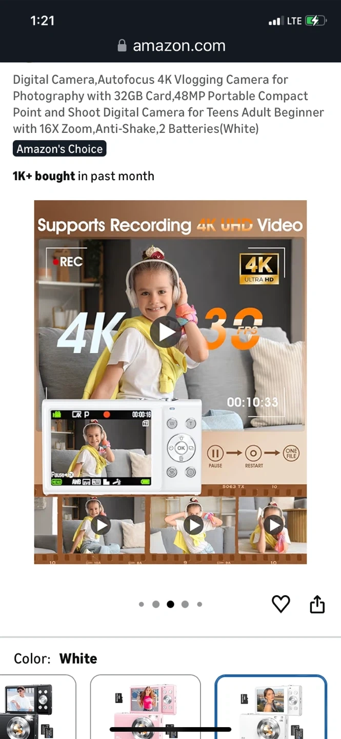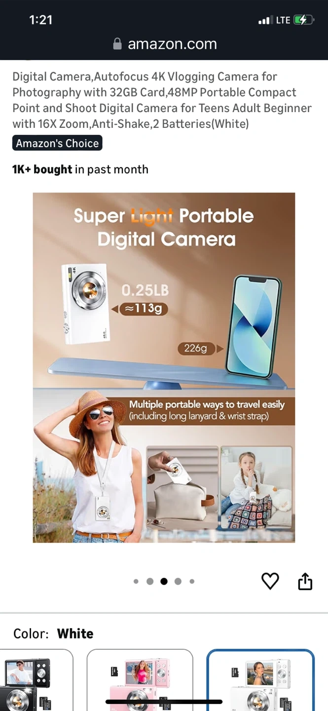 This is a super lightweight portable digital camera. It features 48MP autofocus and 16x zoom, with anti-shake capabilities. It's perfect for teens and adults who want to start vlogging or photography. Comes with 2 batteries and a 32GB memory card.