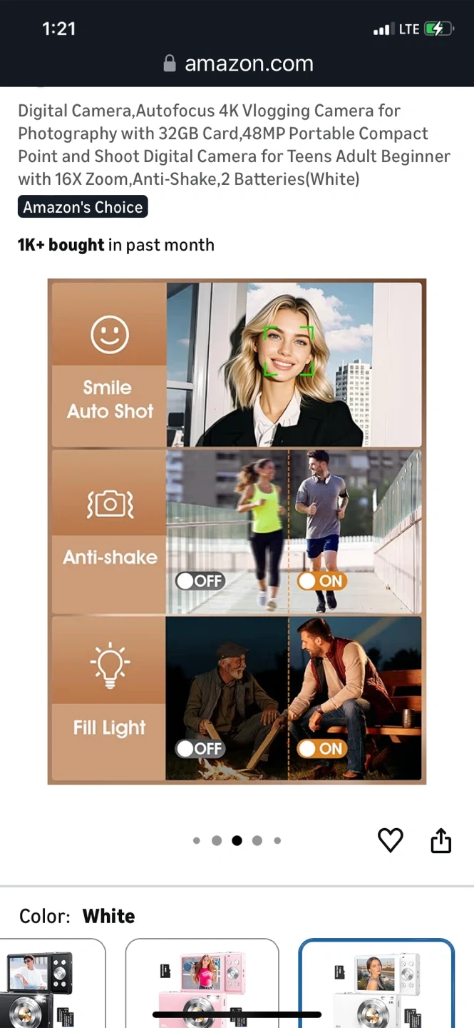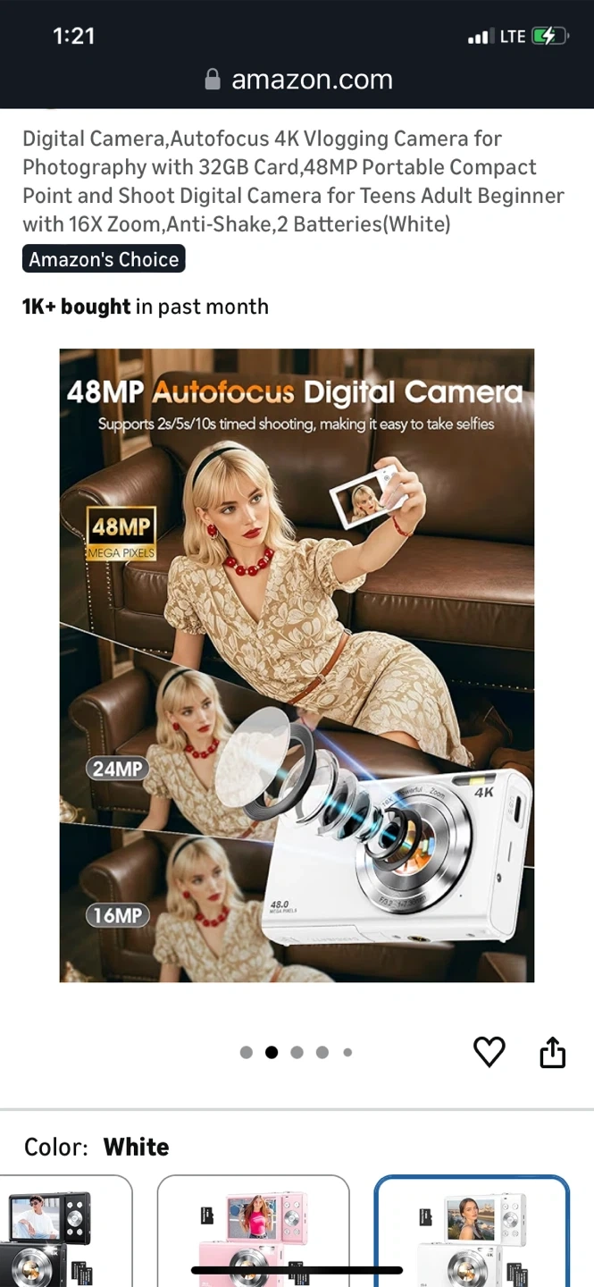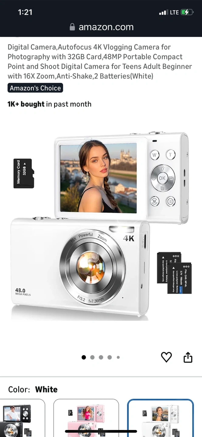 This is a super lightweight portable digital camera. It features 48MP autofocus and 16x zoom, with anti-shake capabilities. It's perfect for teens and adults who want to start vlogging or photography. Comes with 2 batteries and a 32GB memory card.