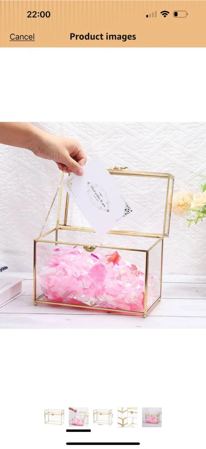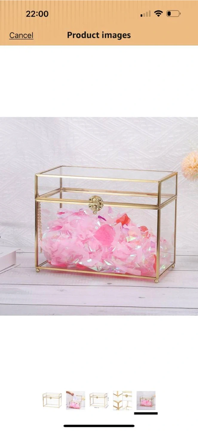 Uxcell Glass Wedding Card Box with Lock – Gold – NEW – $40