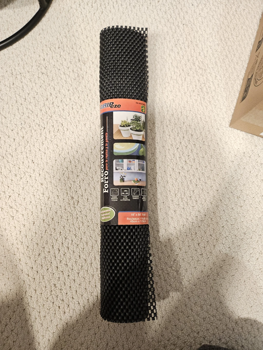 Selling a roll of Grip Eze Forro shelf liner. It's black and measures 18 inches by 50 feet (45cm x 125cm). Great for shelves, drawers, or any surface you want to protect!