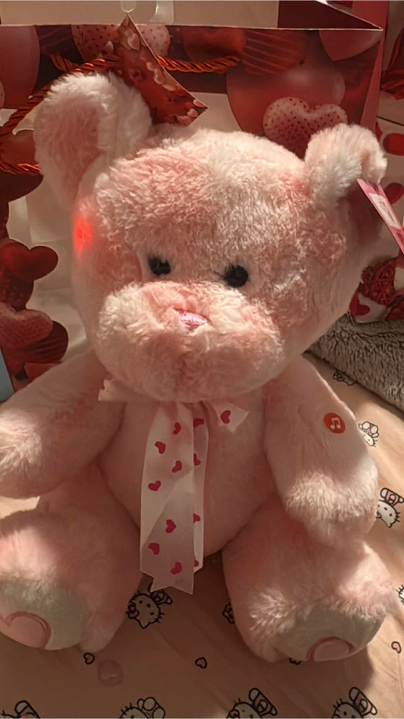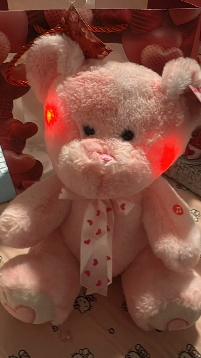 Buy & SellPink Light-Up and song Teddy Bear Plush ToyPink Light-Up and song Teddy Bear Plush Toy$25This is a soft pink teddy bear plush toy. It's decorated with a bow and has heart accents. It lights up with red lights in its cheeks! And singConditionNewWHERE TO MEETCheck LocationView MapSELLERverifiedJessicaFlushing691 review1 chats·0 favorites·5 viewsSEND CHAT TO SELLERHi Jessica! I’m interested in your listing.Hi Jessica! I’m interested in your listing.Get the Karrot app to chatSign In to chat