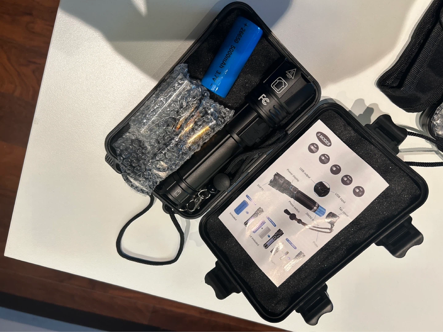 This SUNTACT flashlight is super bright and comes in a durable case. It includes a rechargeable battery and charger. Multiple lighting modes available!
