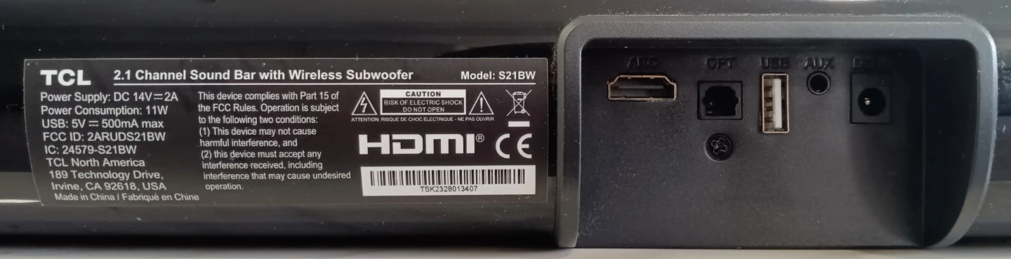 TCL S21BW Home Theater Sound Bar with Wireless Subwoofer is Like New.