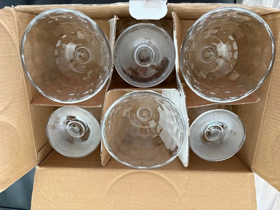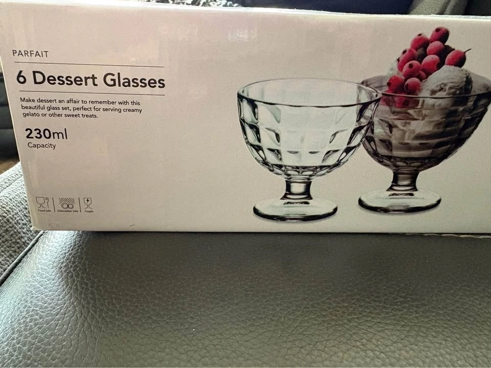 Set of 6 dessert glasses/bowls, each with a 230 ml capacity. Perfect for serving individual desserts and snacks.