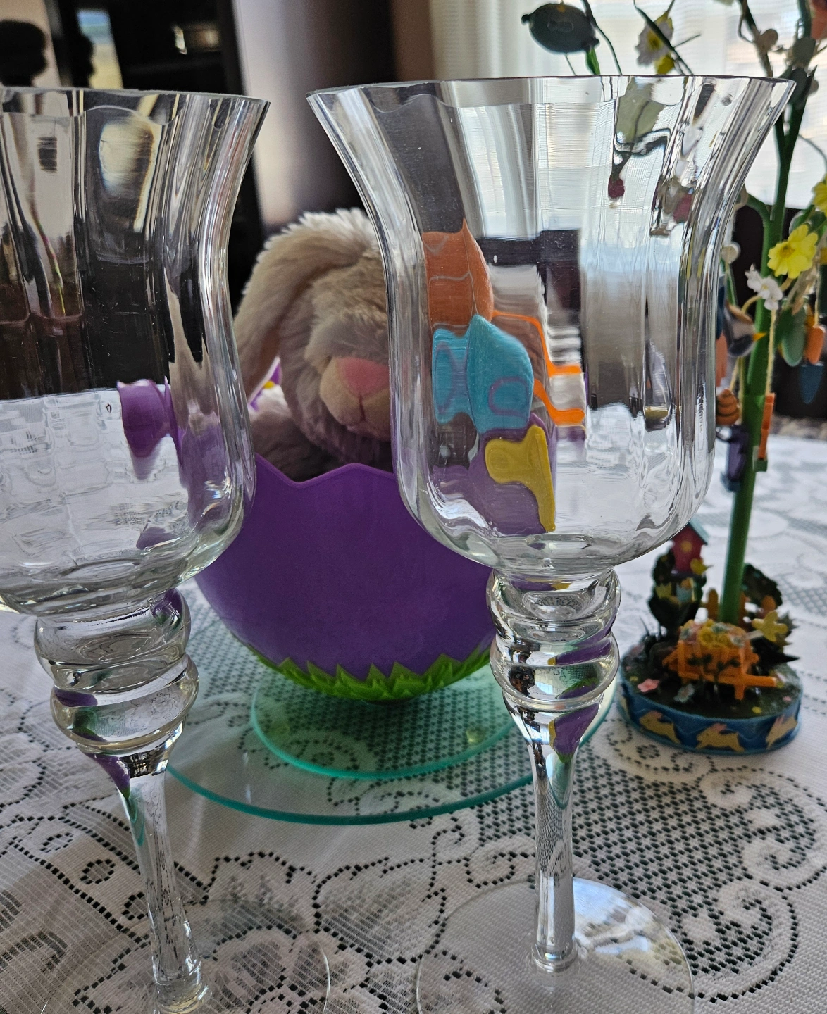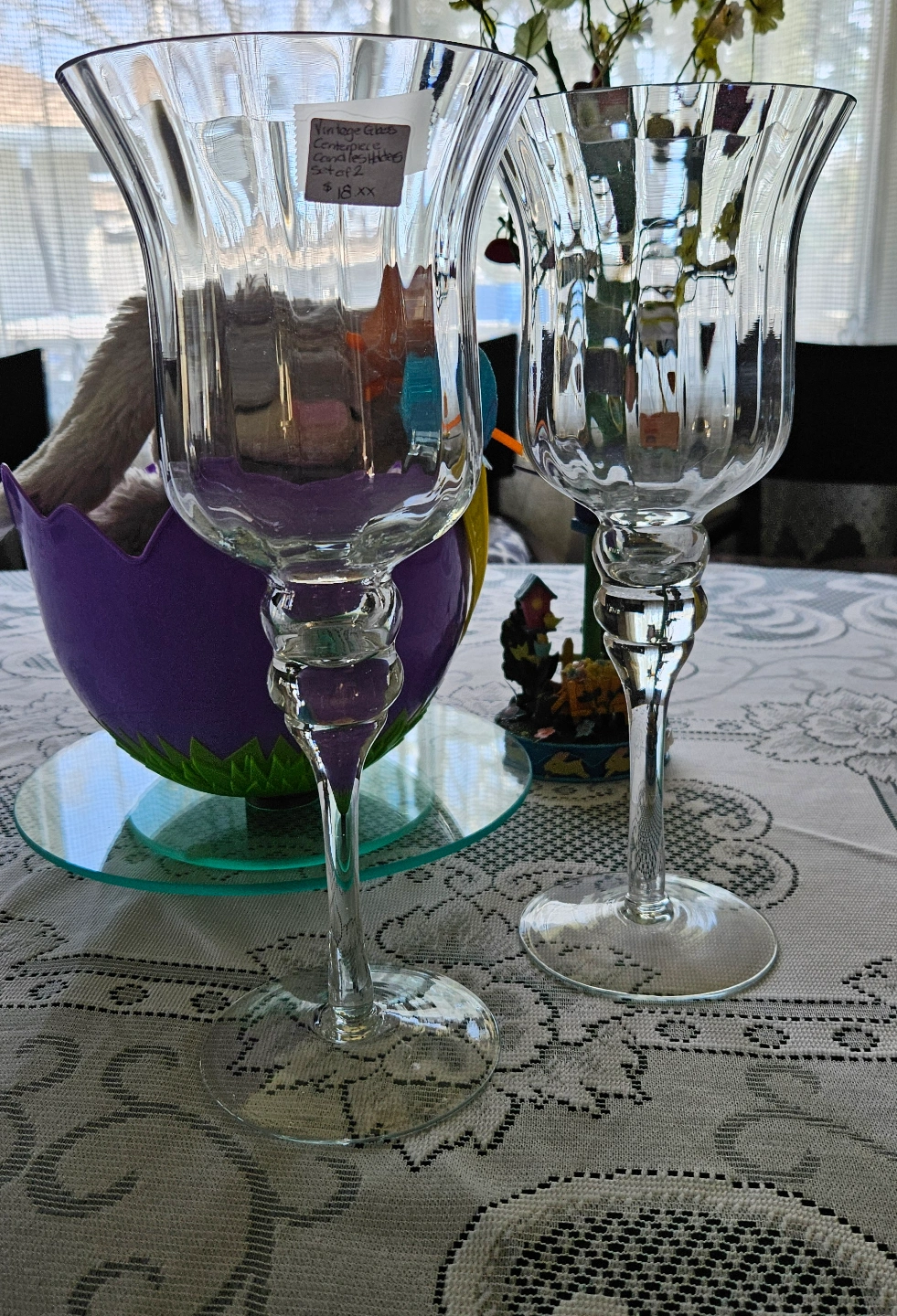 These eye catching centerpiece candle holders stand 12" high and the fluted opening is 5" across.