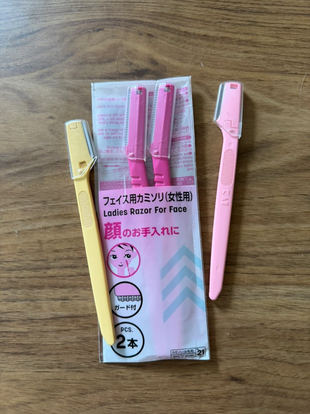 4 ladies razors designed for facial hair removal, bought in Japan Each razor includes a protective guard for safe use. They're perfect for quick touch-ups and maintaining smooth skin.