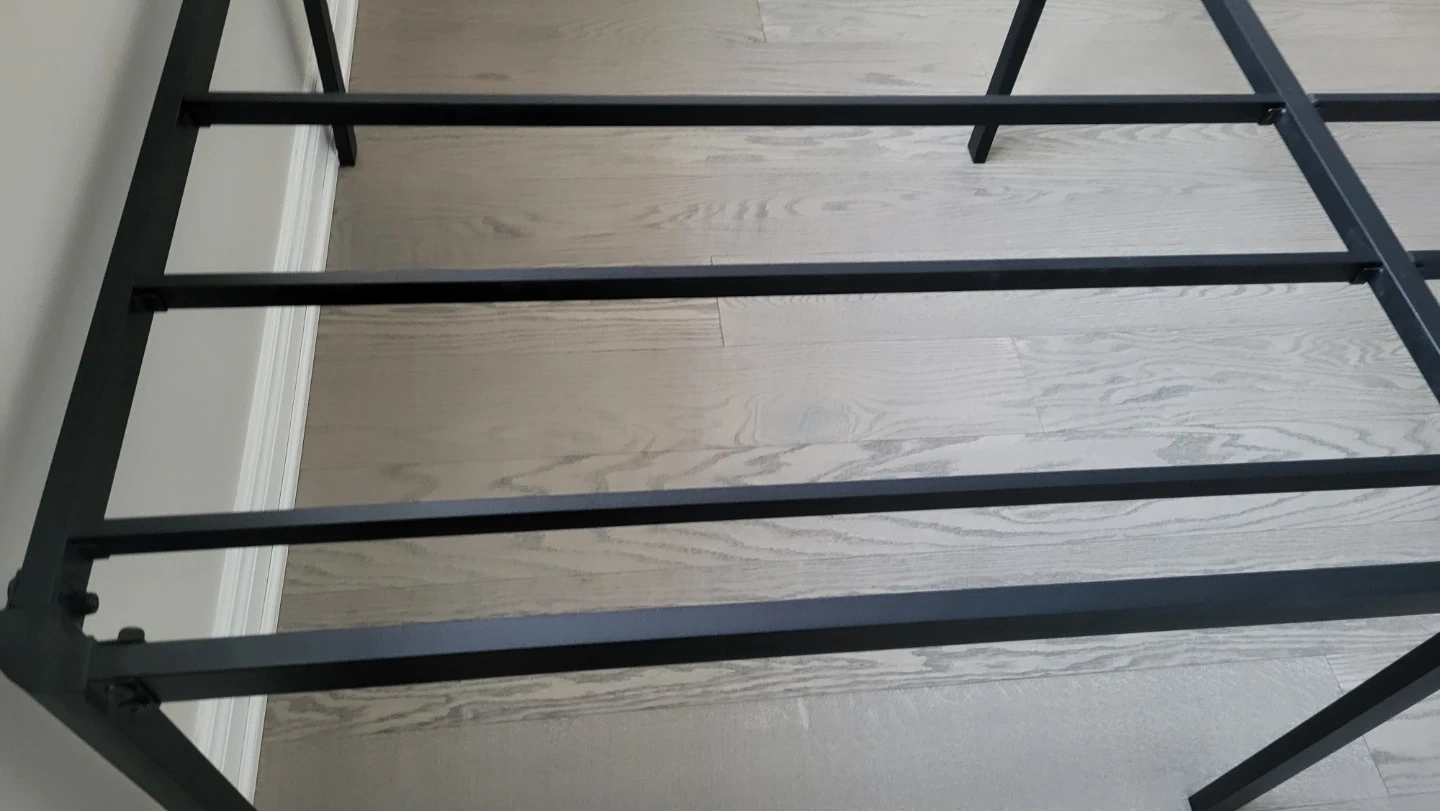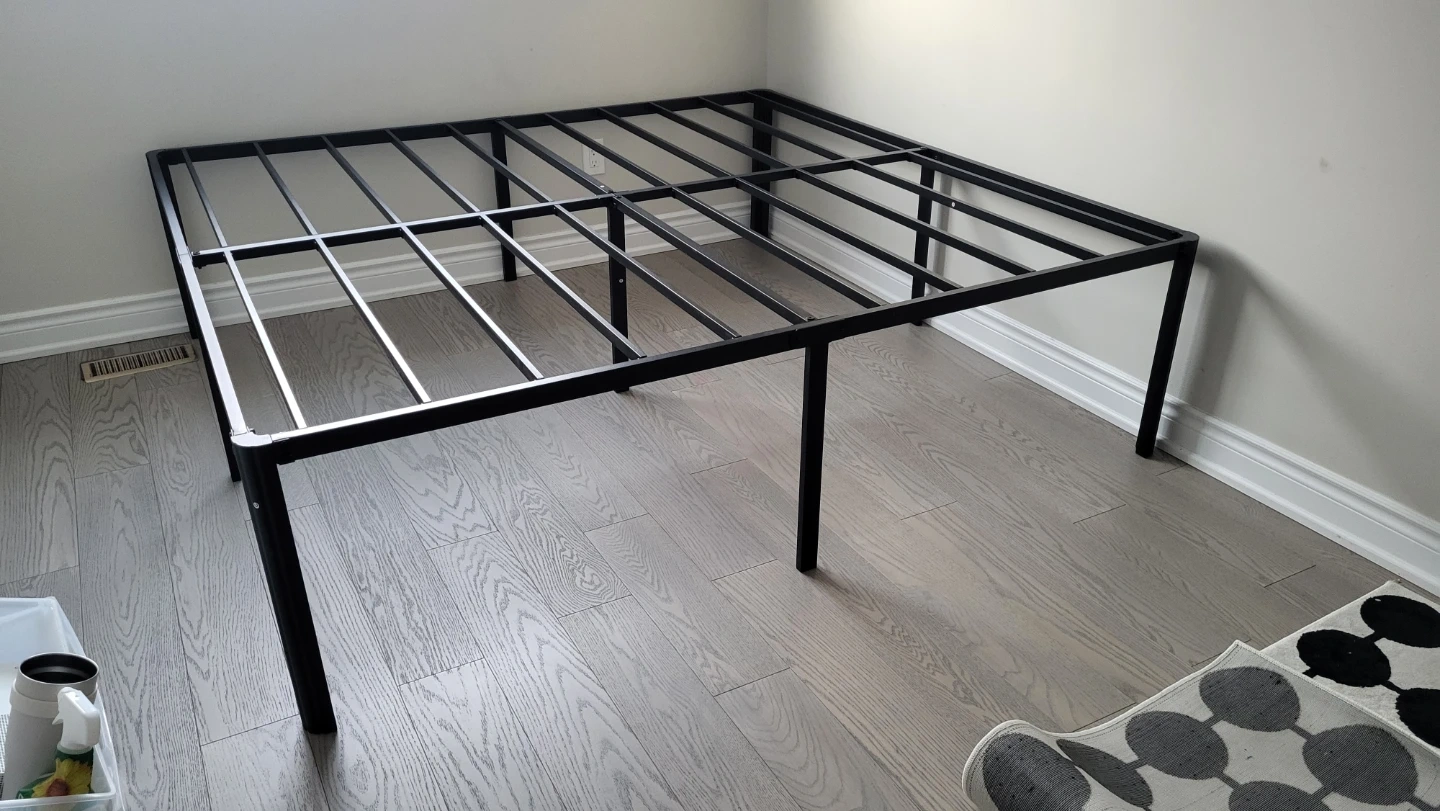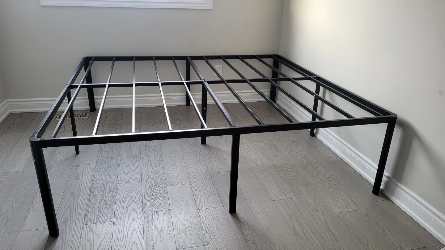 A sturdy black metal bed frame. Mo need spring box.