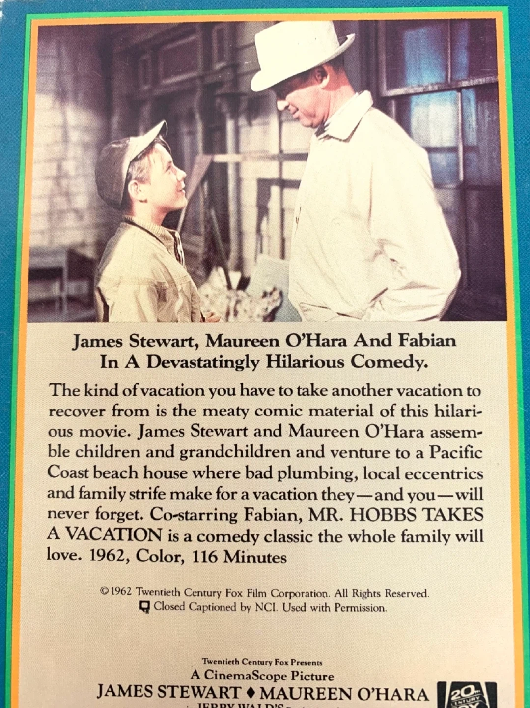 James Stewart and Maureen O'Hara star in this 1962 comedy classic. It's a Cinemascope Picture running 116 minutes. This is a great movie for the whole family! I wanted to move into the house they inhabit and the movie itself is very sweet.