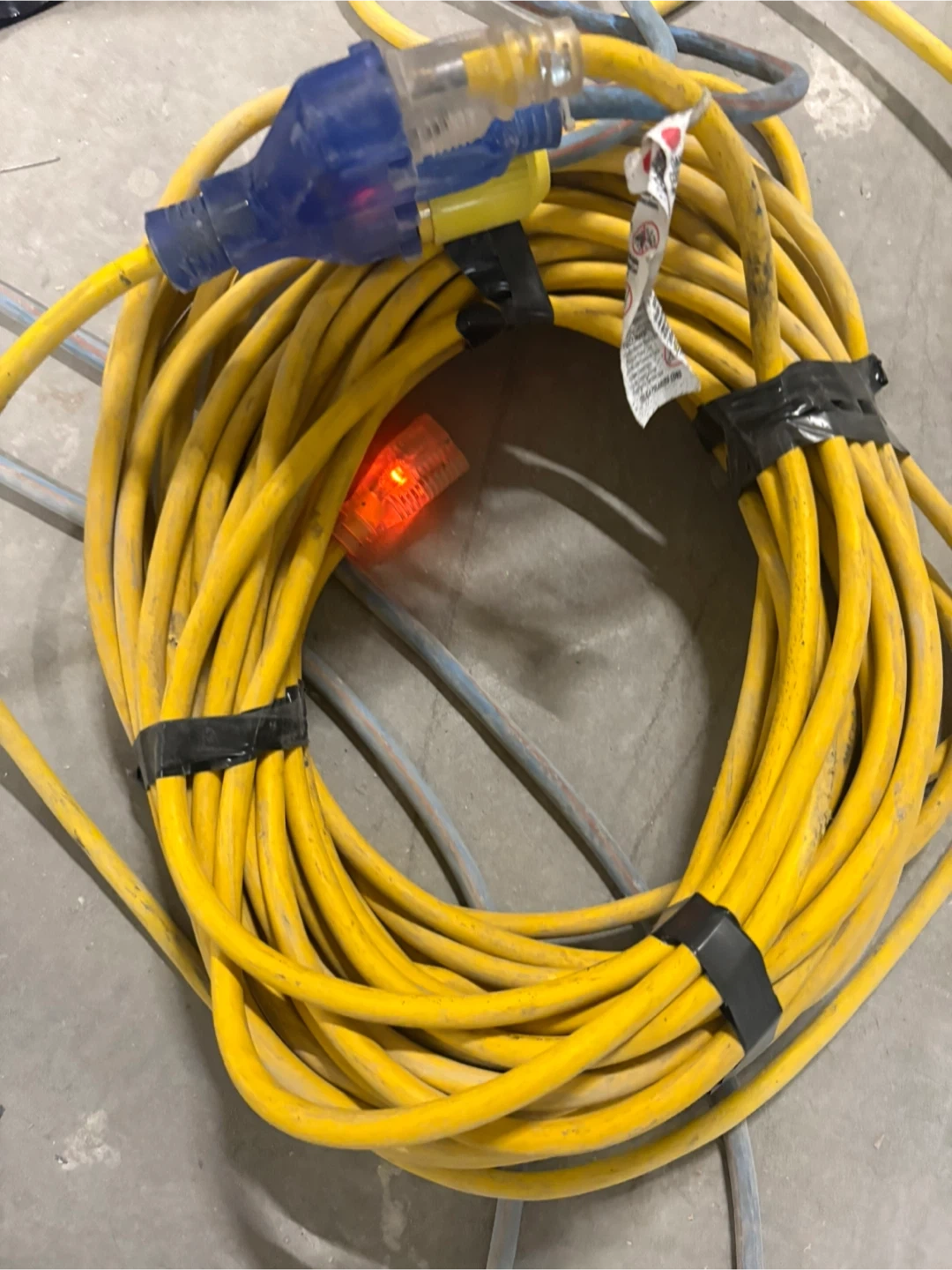 This is a heavy-duty yellow extension cord. Was 100 feet