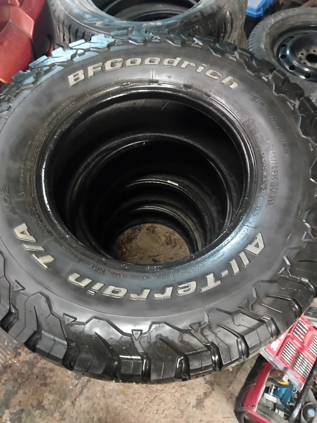 Set of four BFGoodrich All-Terrain T/A KO2 tires. Size is LT265/75R16.