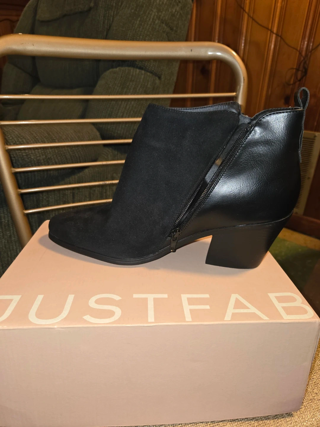 Selling a pair of JustFab black ankle booties. They come with the original box!
