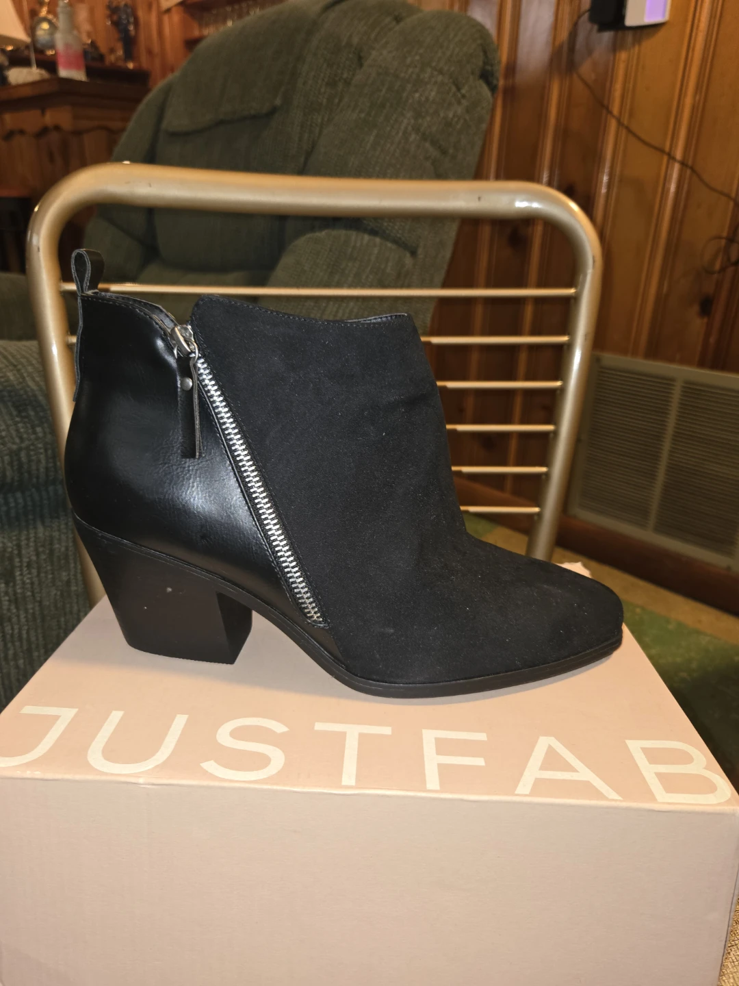 Selling a pair of JustFab black ankle booties. They come with the original box!