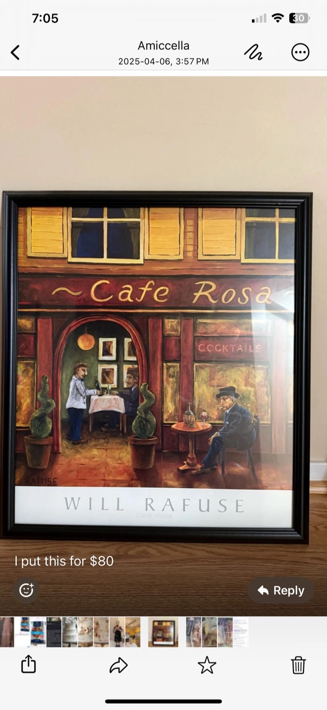 A lovely print, framed and ready to hang. Depicts a scene from Cafe Rosa by Will Rafuse.