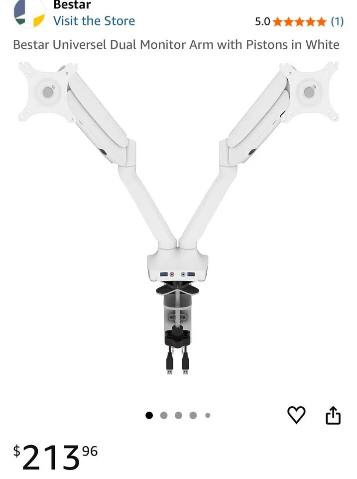 Buy & SellNew Dual Monitor ArmNew Dual Monitor Arm$115New in box. Bestar Universal Dual Monitor Arm with Pistons (White).WHERE TO MEETCheck LocationView MapSELLERverifiedChristineRemington Park761 review0 chats·0 favorites·4 viewsSEND CHAT TO SELLERHi Christine! I’m interested in your listing.Hi Christine! I’m interested in your listing.Get the Karrot app to chatSign In to chat