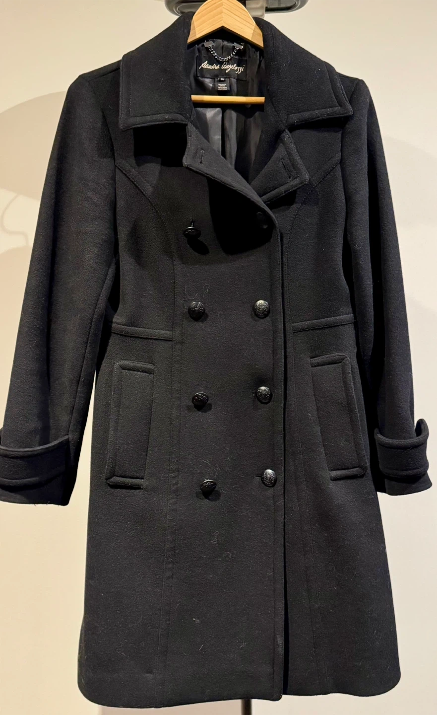 Selling a stylish black wool coat from Sandra Angelozzi. It's a size 36 and in great condition! Perfect for keeping warm during the colder months
