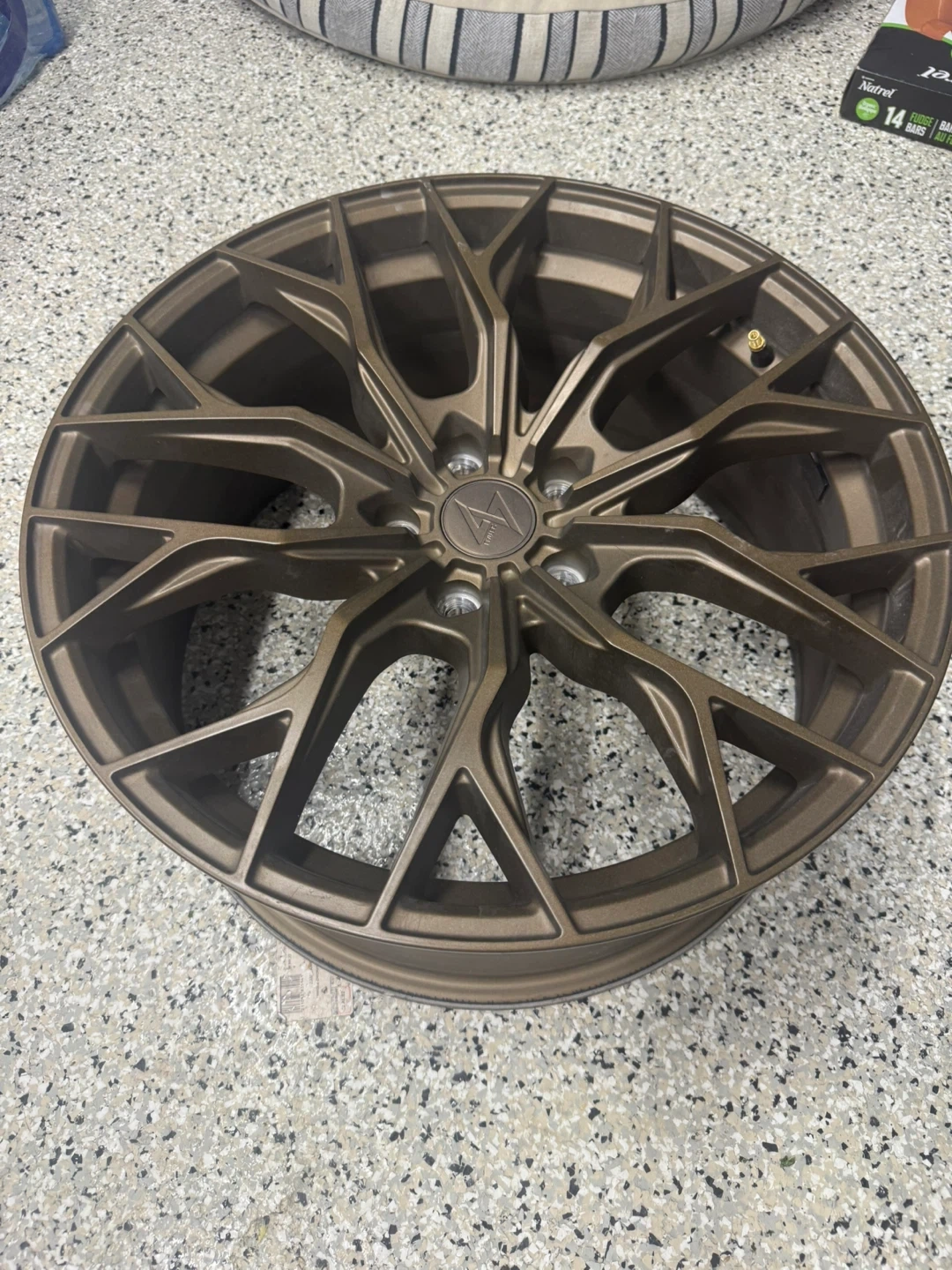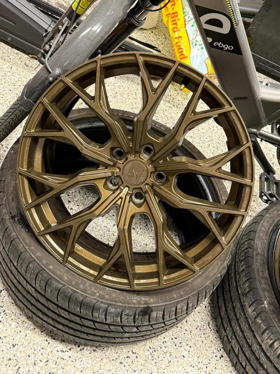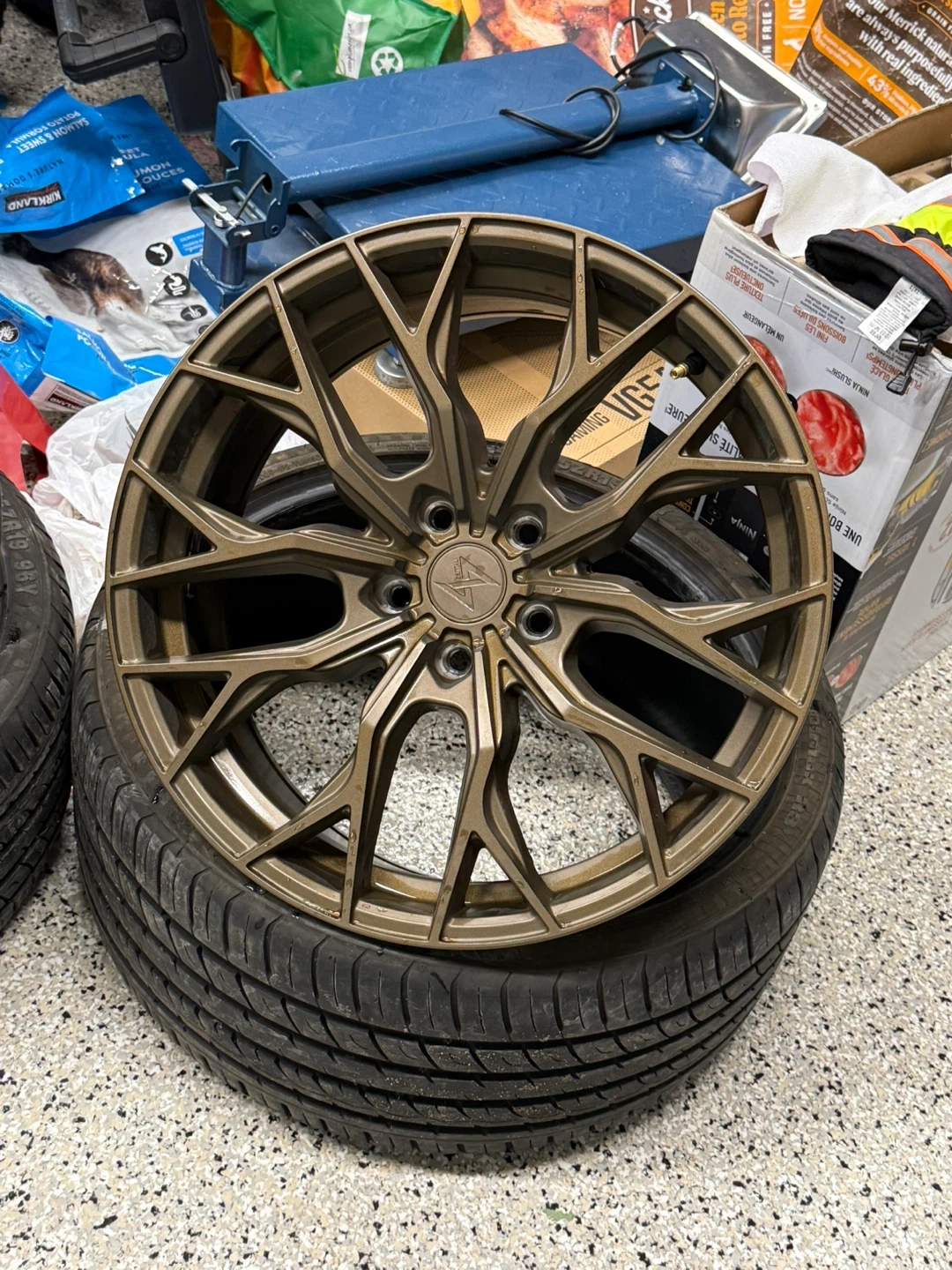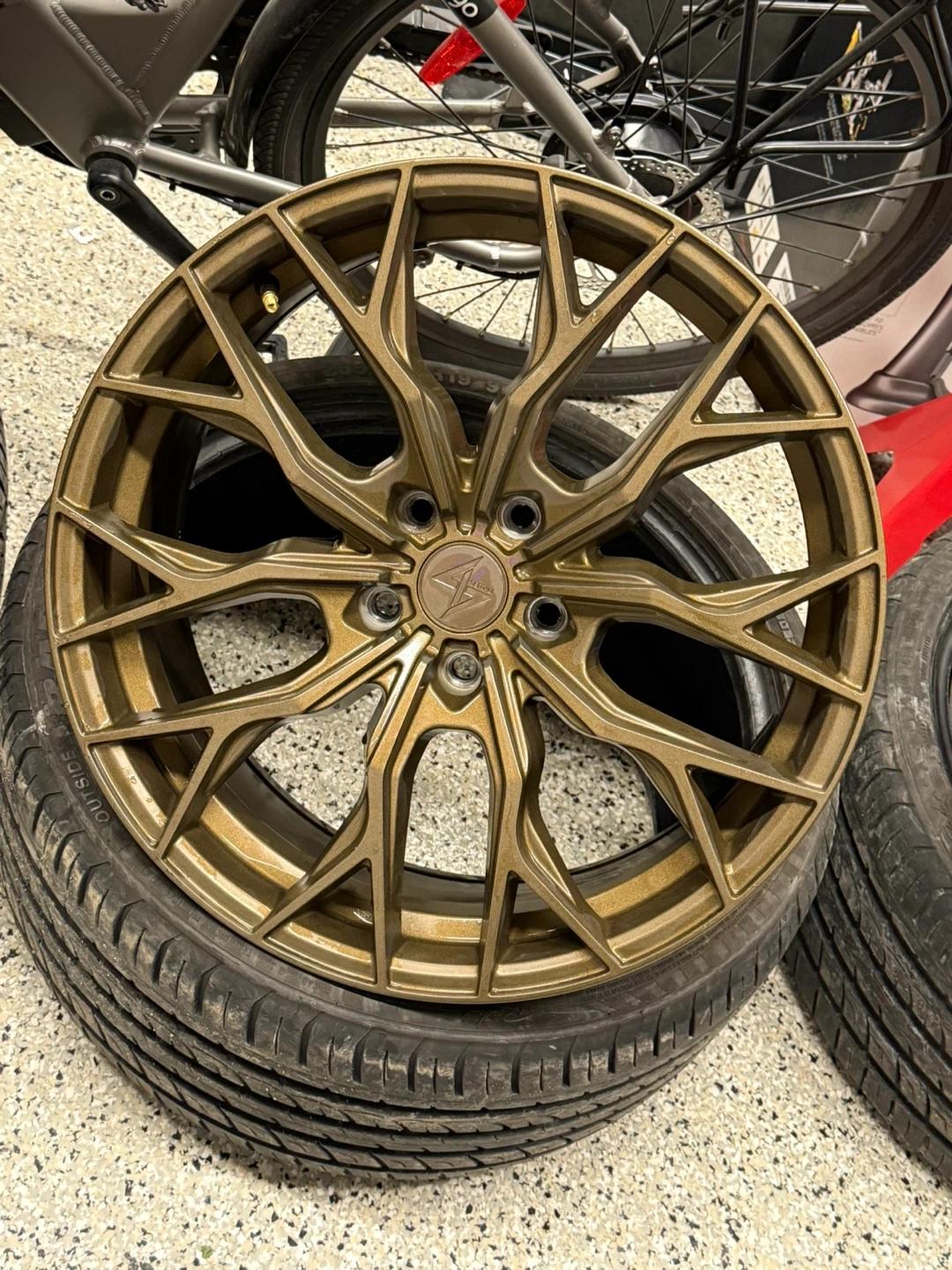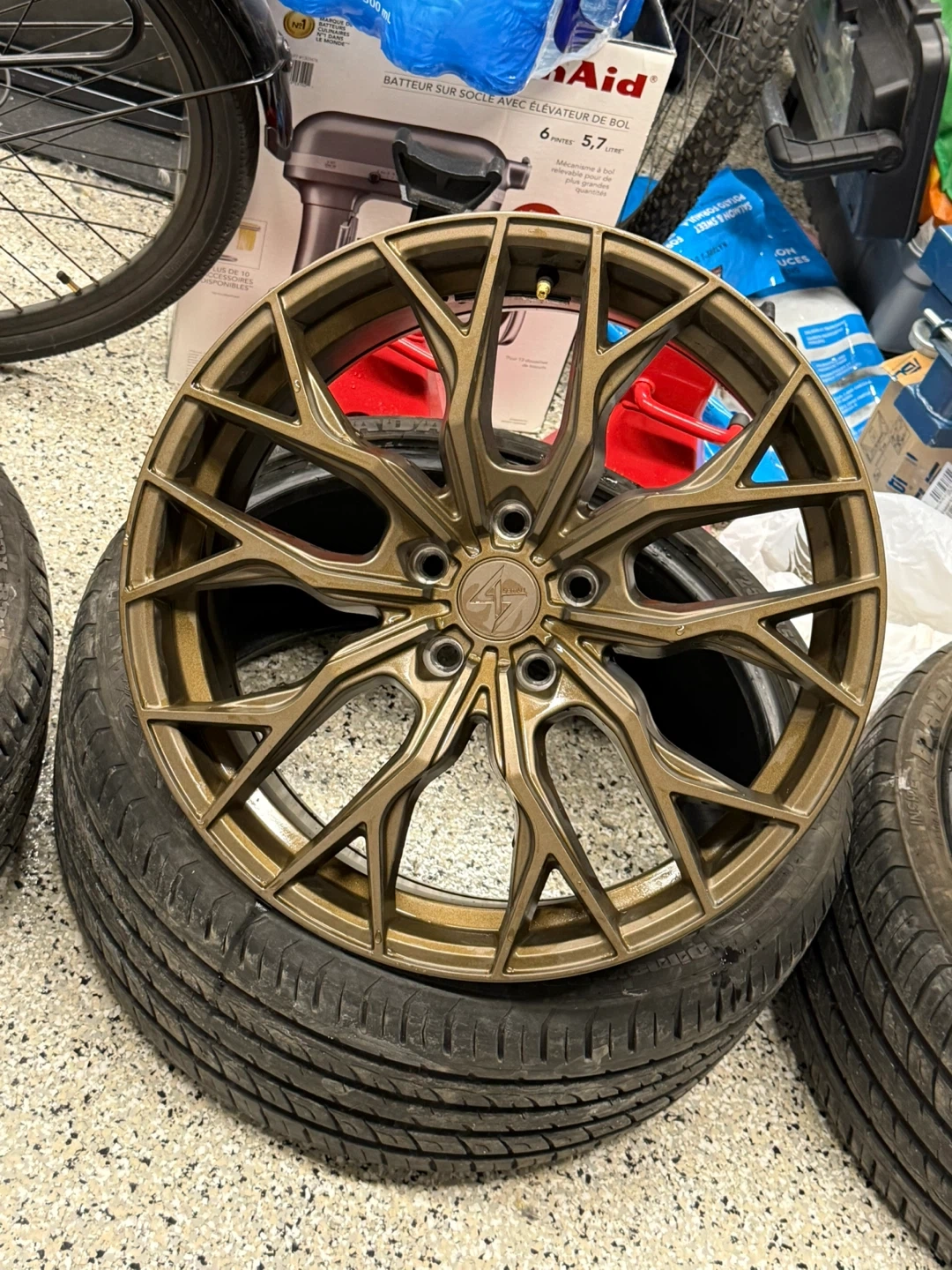 Selling a set of aftermarket rims in a bronze colour. They are in good condition and ready to be installed on your vehicle. Comes with tpms. 19 inch 5x114.3