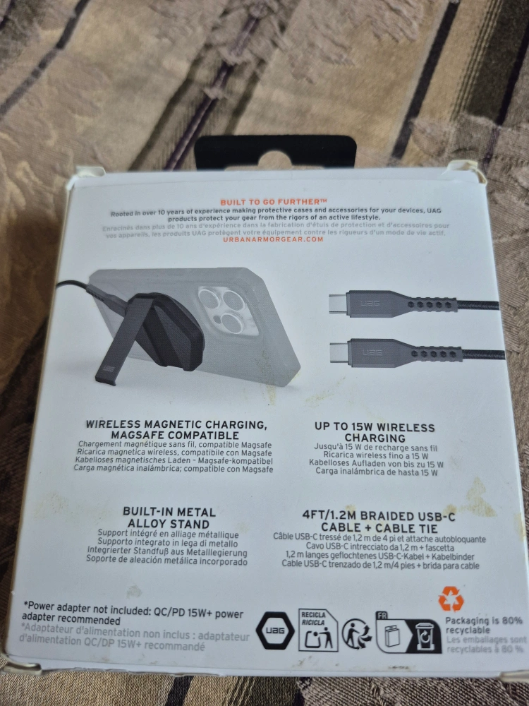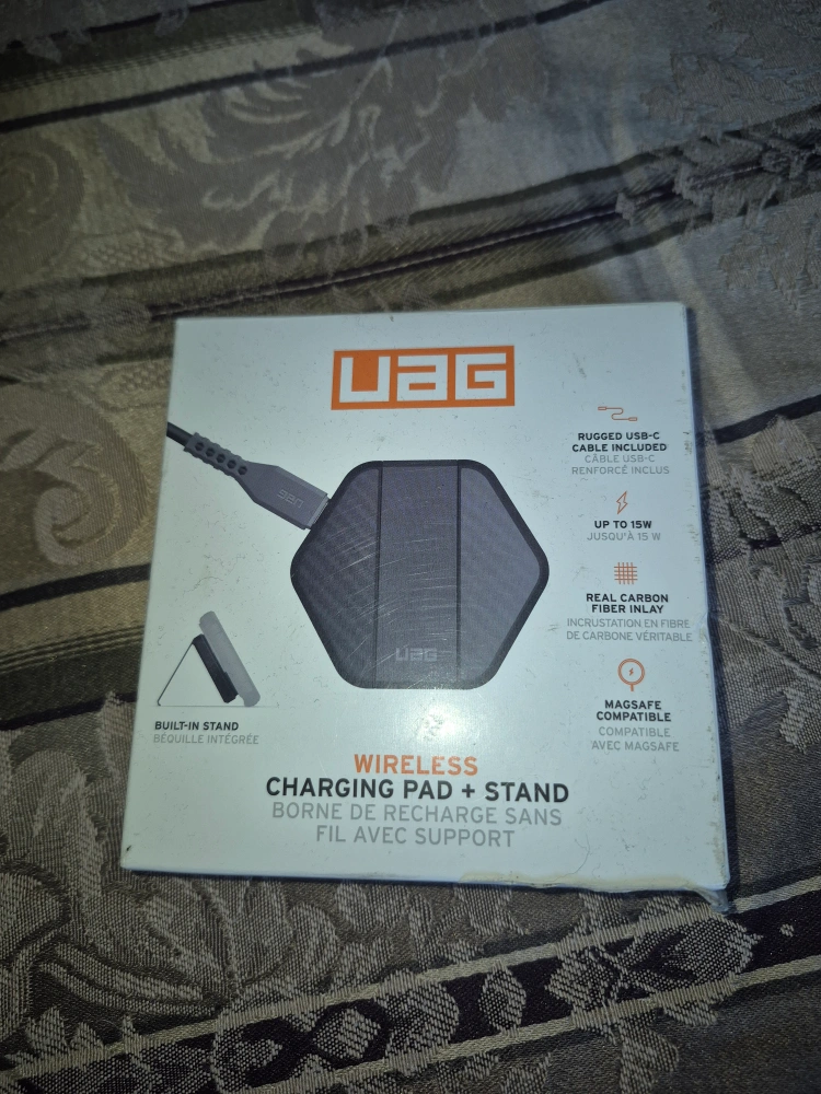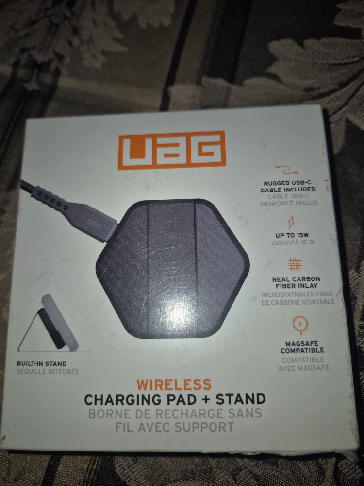 33Selling a UAG Wireless Charging Pad + Stand! It's in great condition and comes with the original box. It features a rugged USB-C cable and a built-in stand. Compatible with MagSafe and supports up to 15W charging