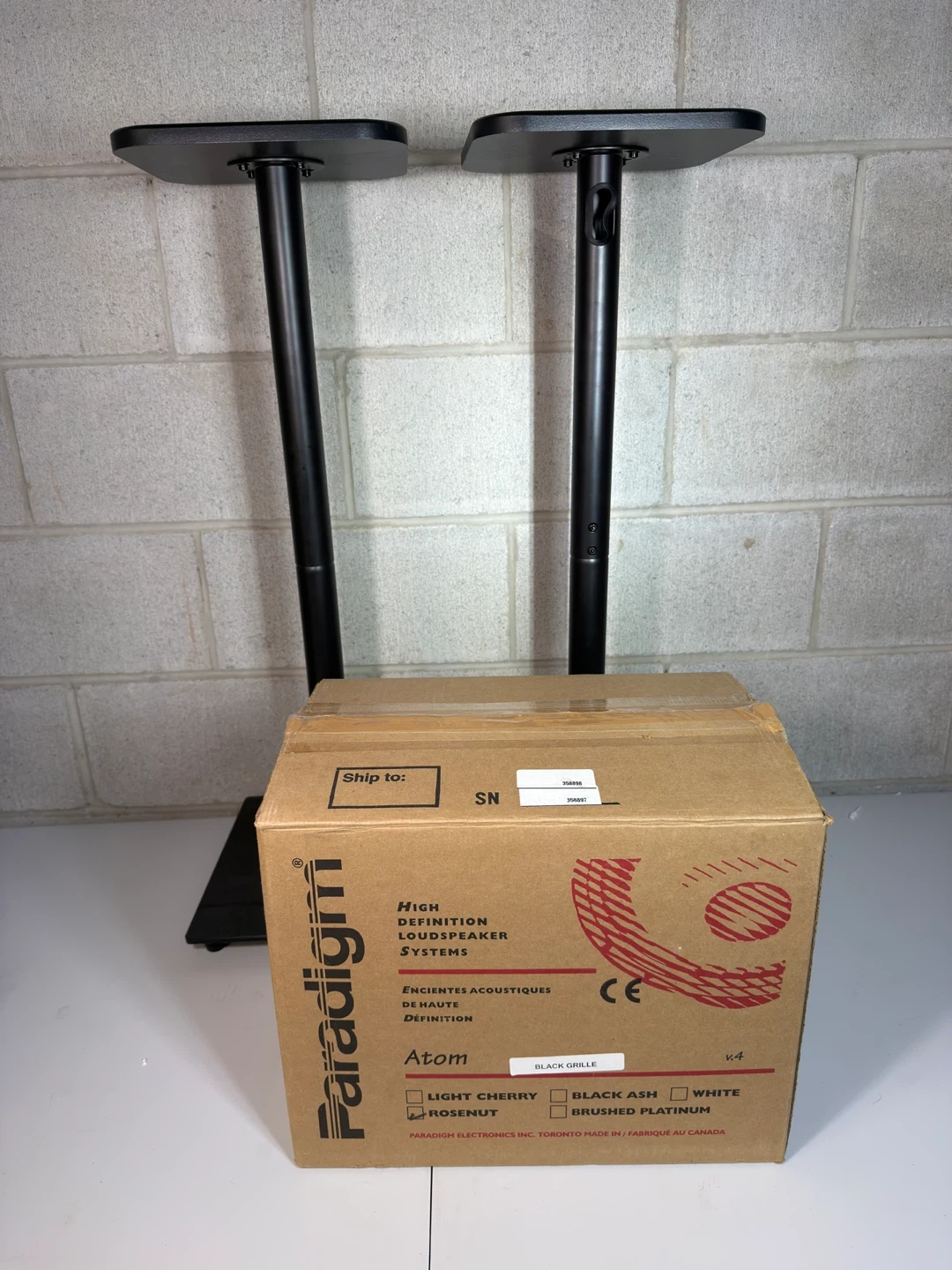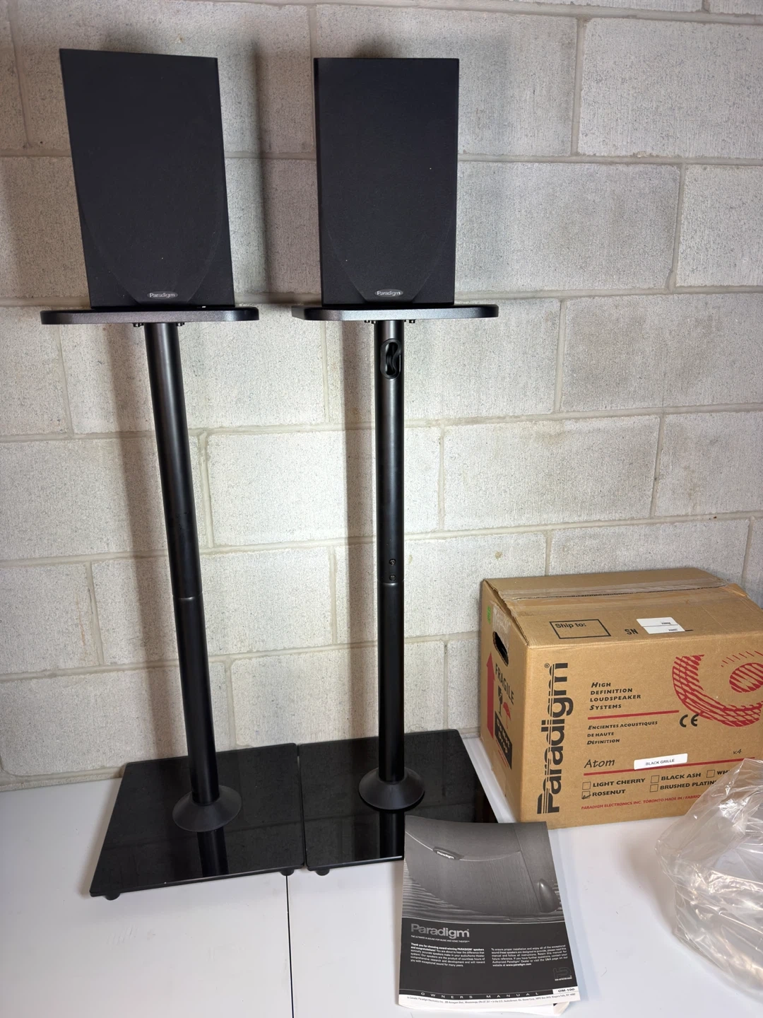 Selling my Paradigm V4 - like new condition. Selling because doesn’t fit my set up. Comes with 2 stands.